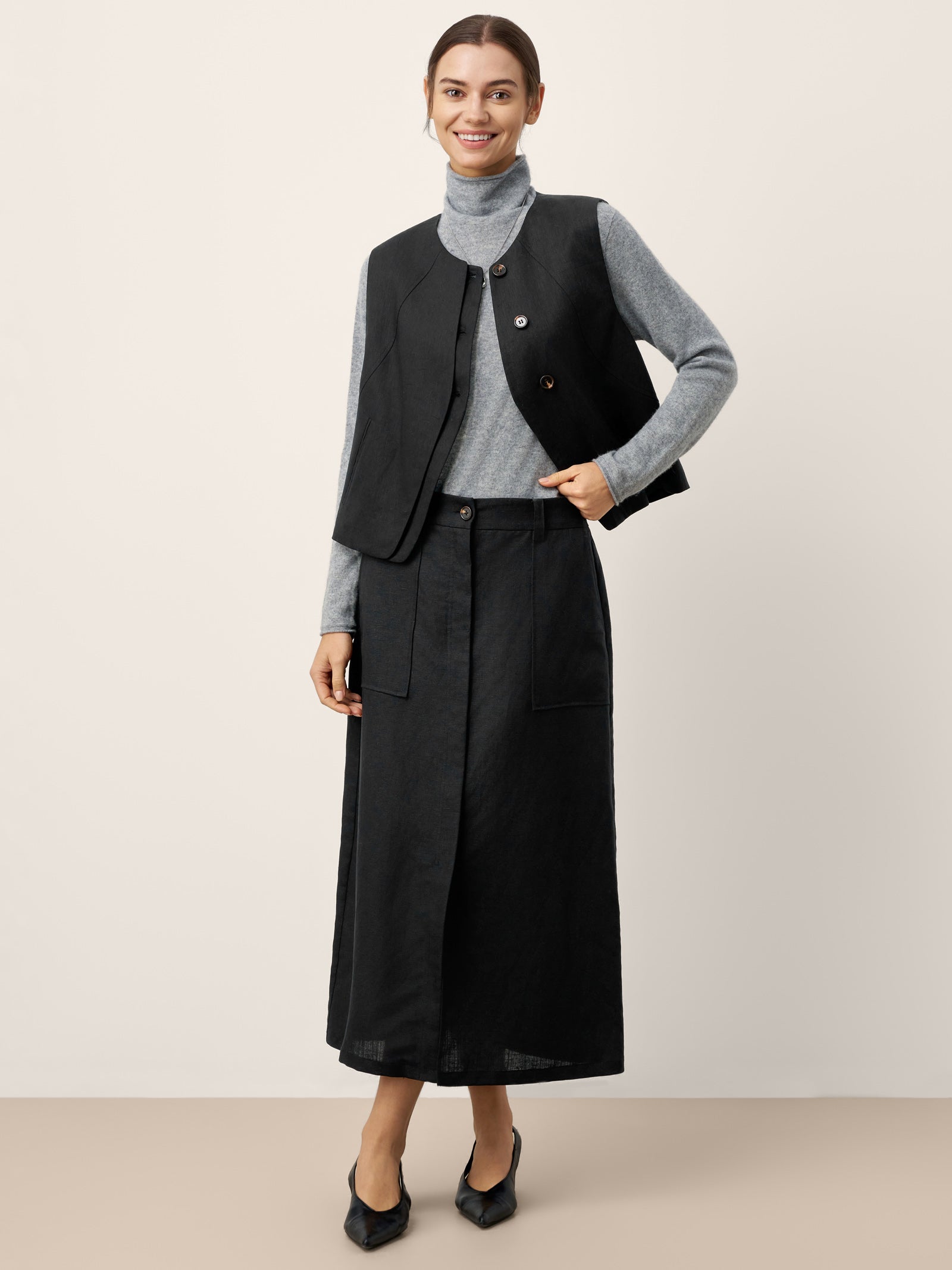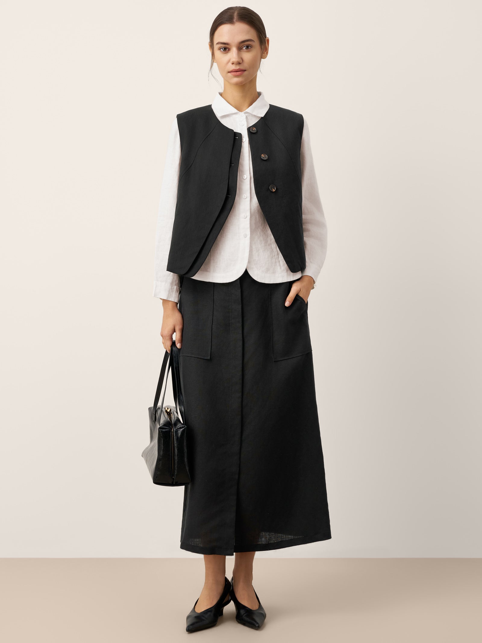 Linen-Lyocell Patch Pocket Placket Skirt LYRA