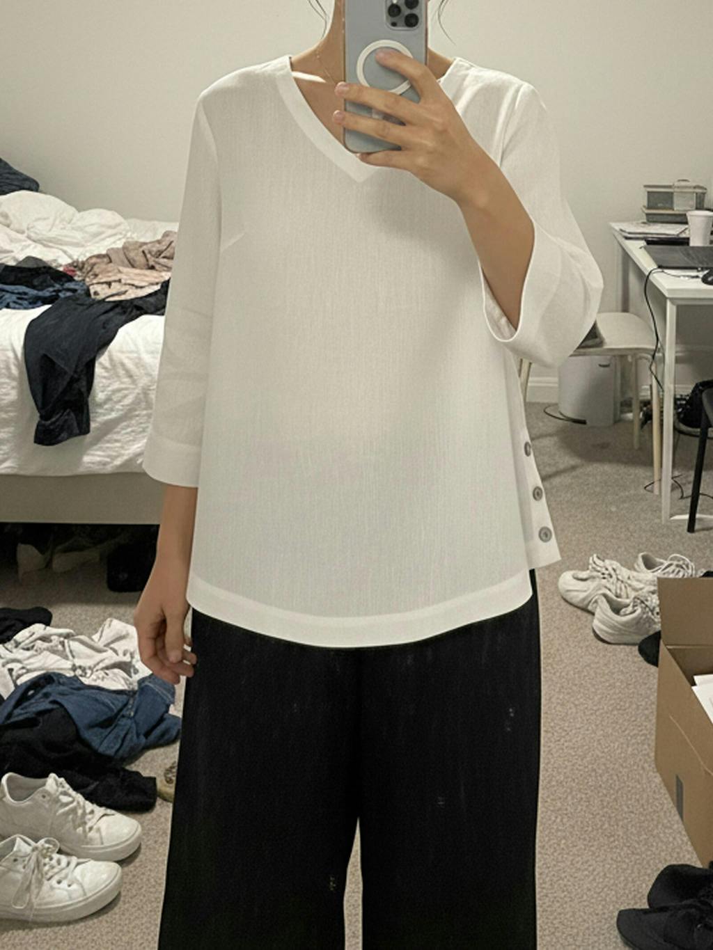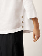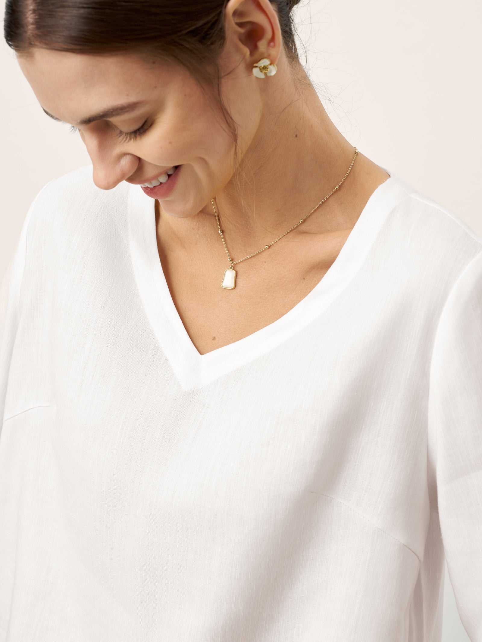 Linen-Lyocell V-Neck Button Detail Overtop ODETTE