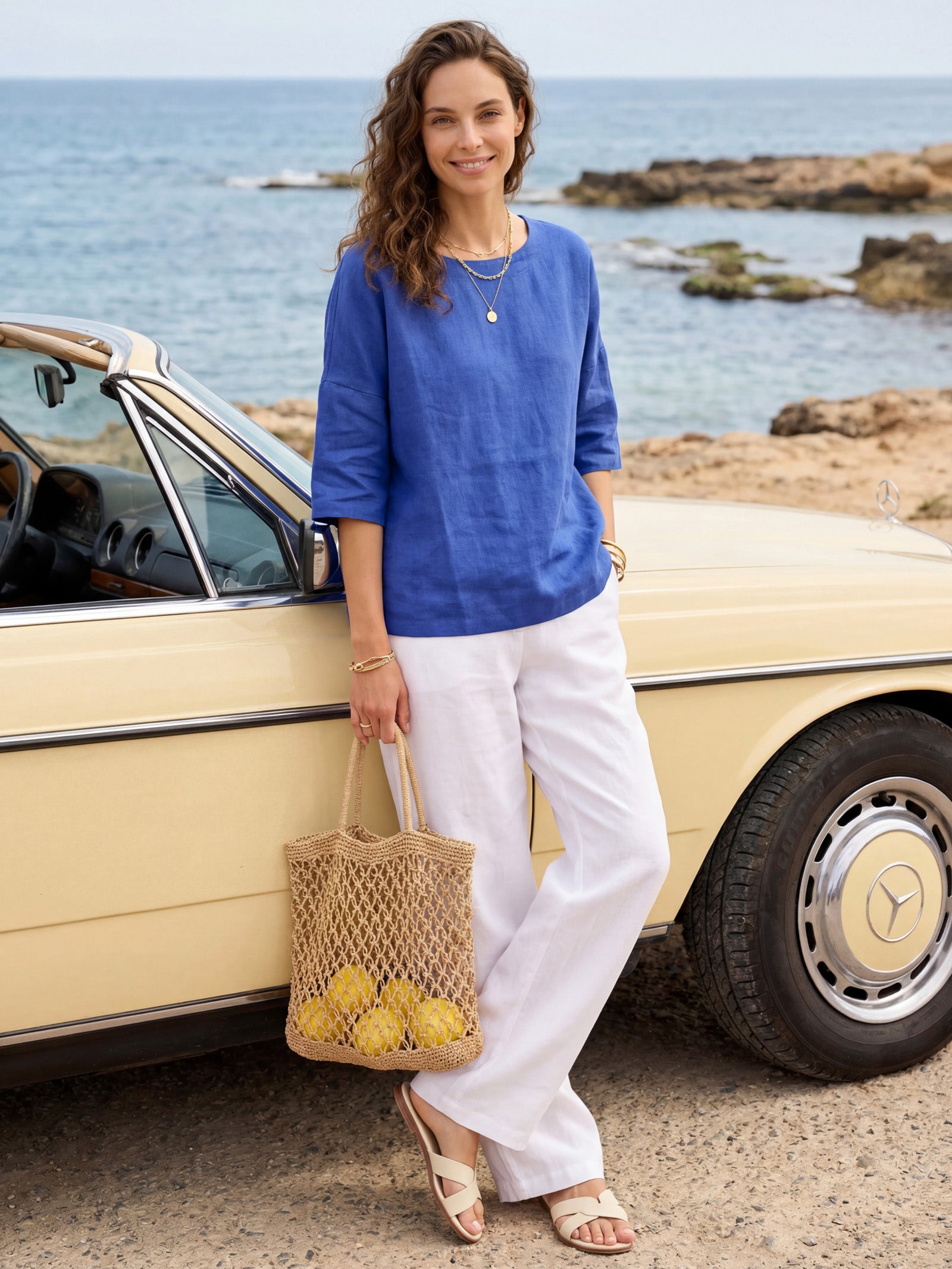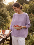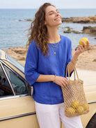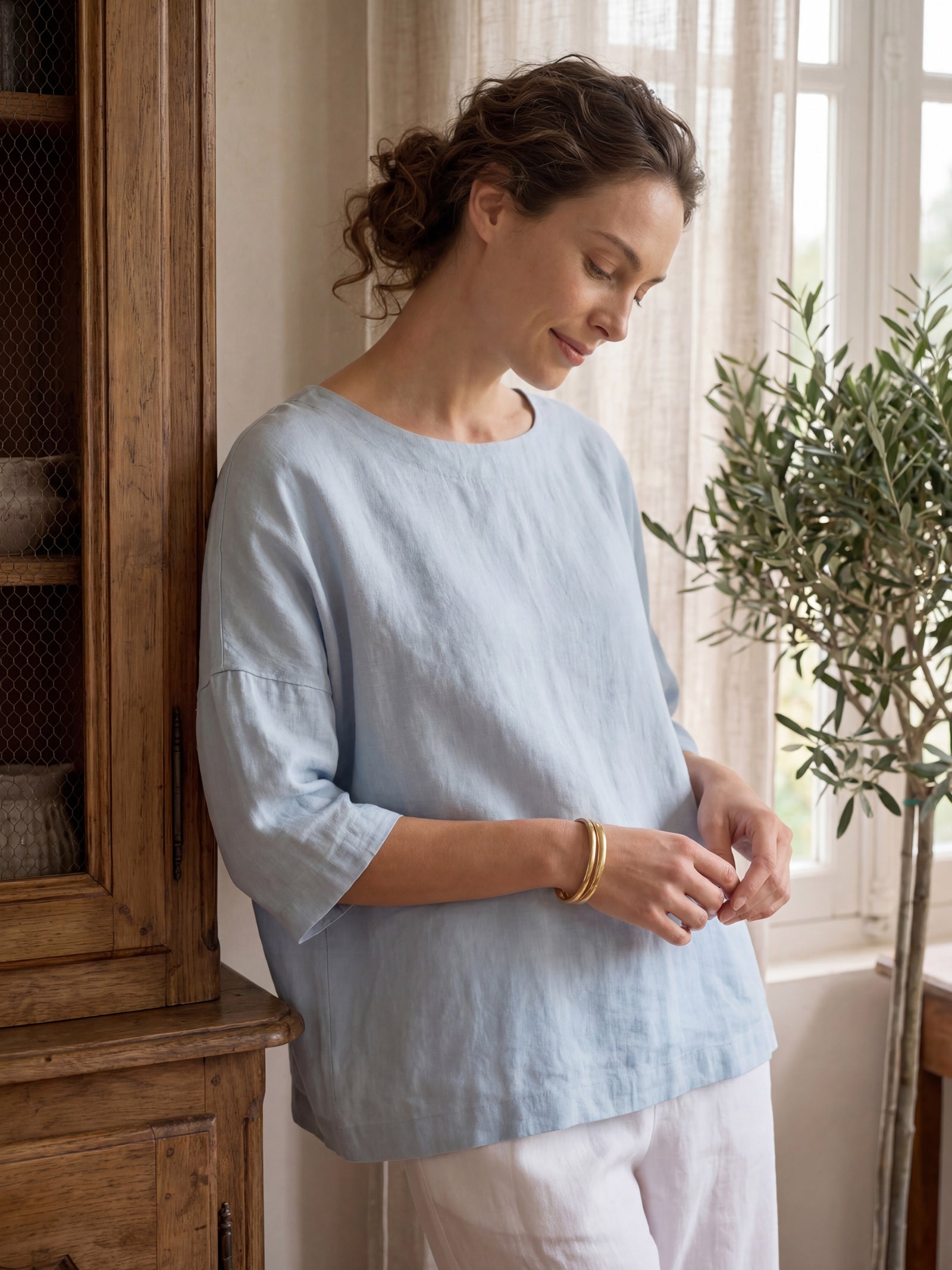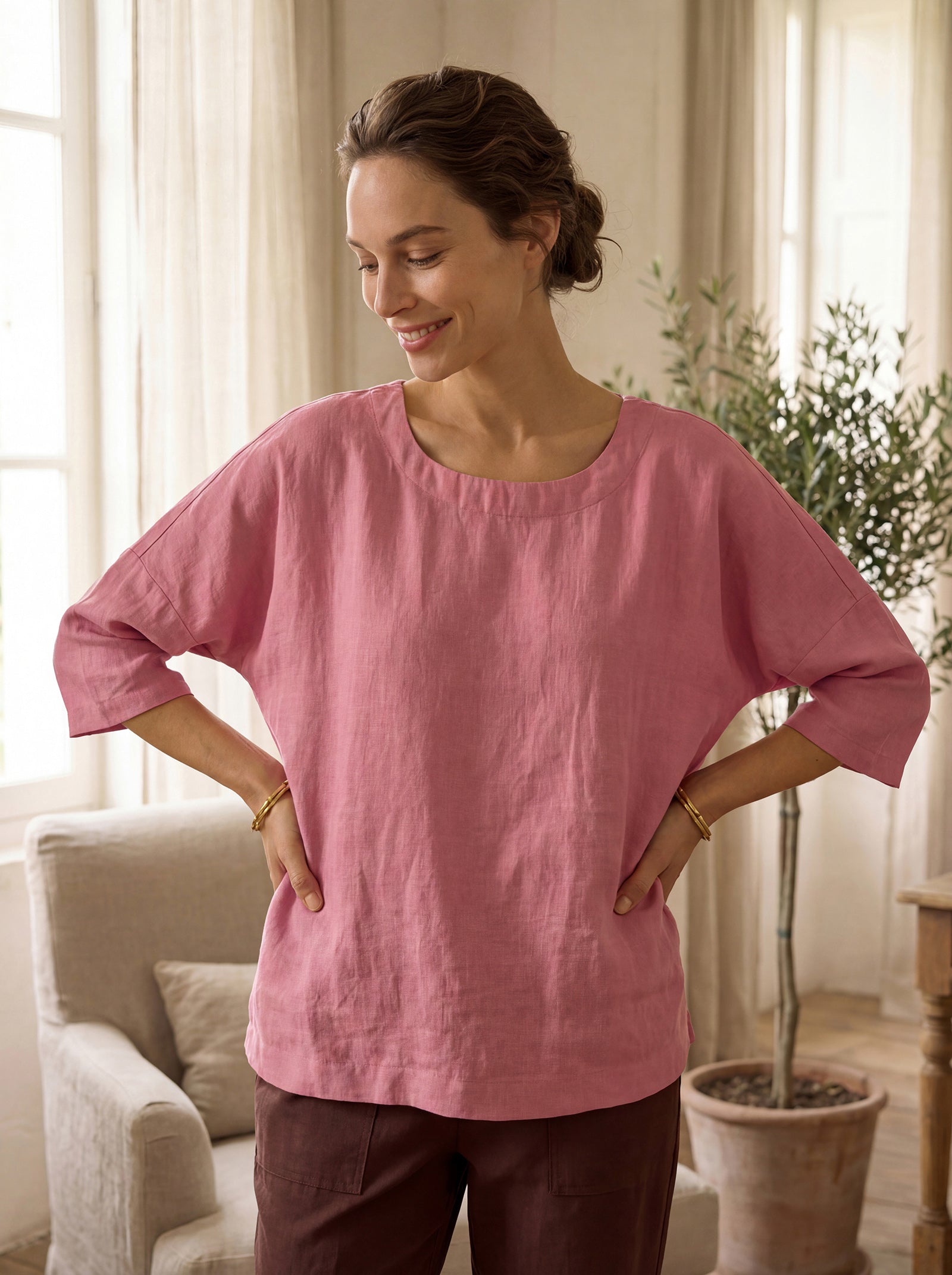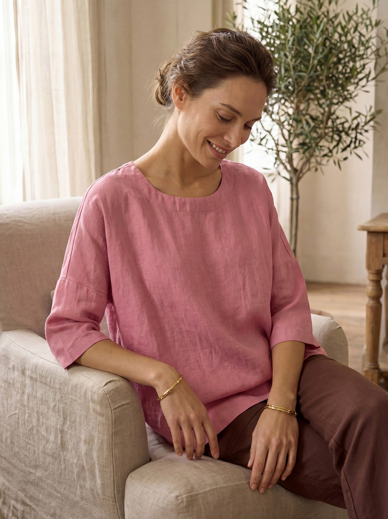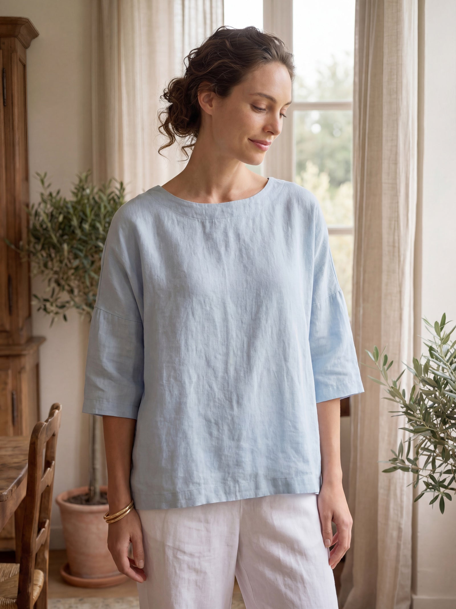 100% Linen Boatneck 3/4 Length Sleeve Top AURORA