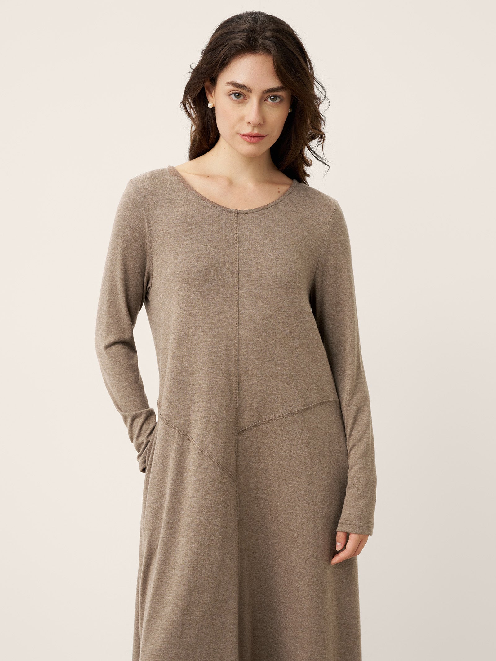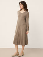 Cashmere Crew Neck Sculpted Seam A-Line Midi Dress HARLOW