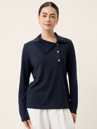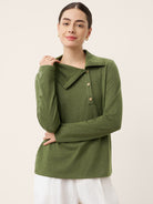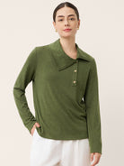 Wool Asymmetric Lapel Fruit Button Decor Top YSABEL
