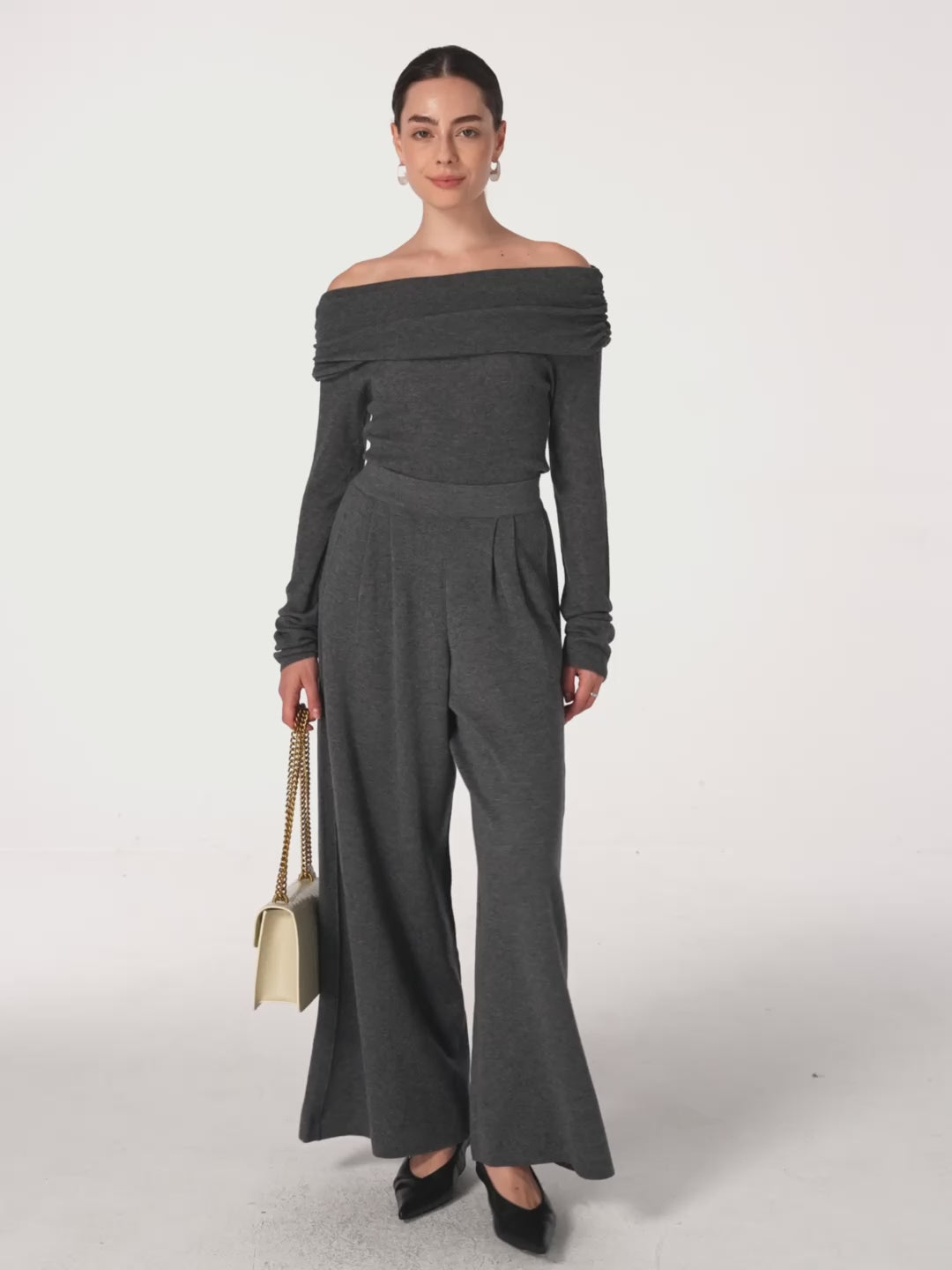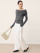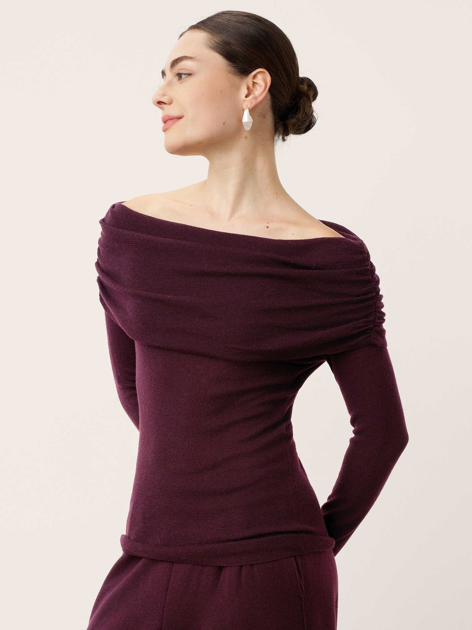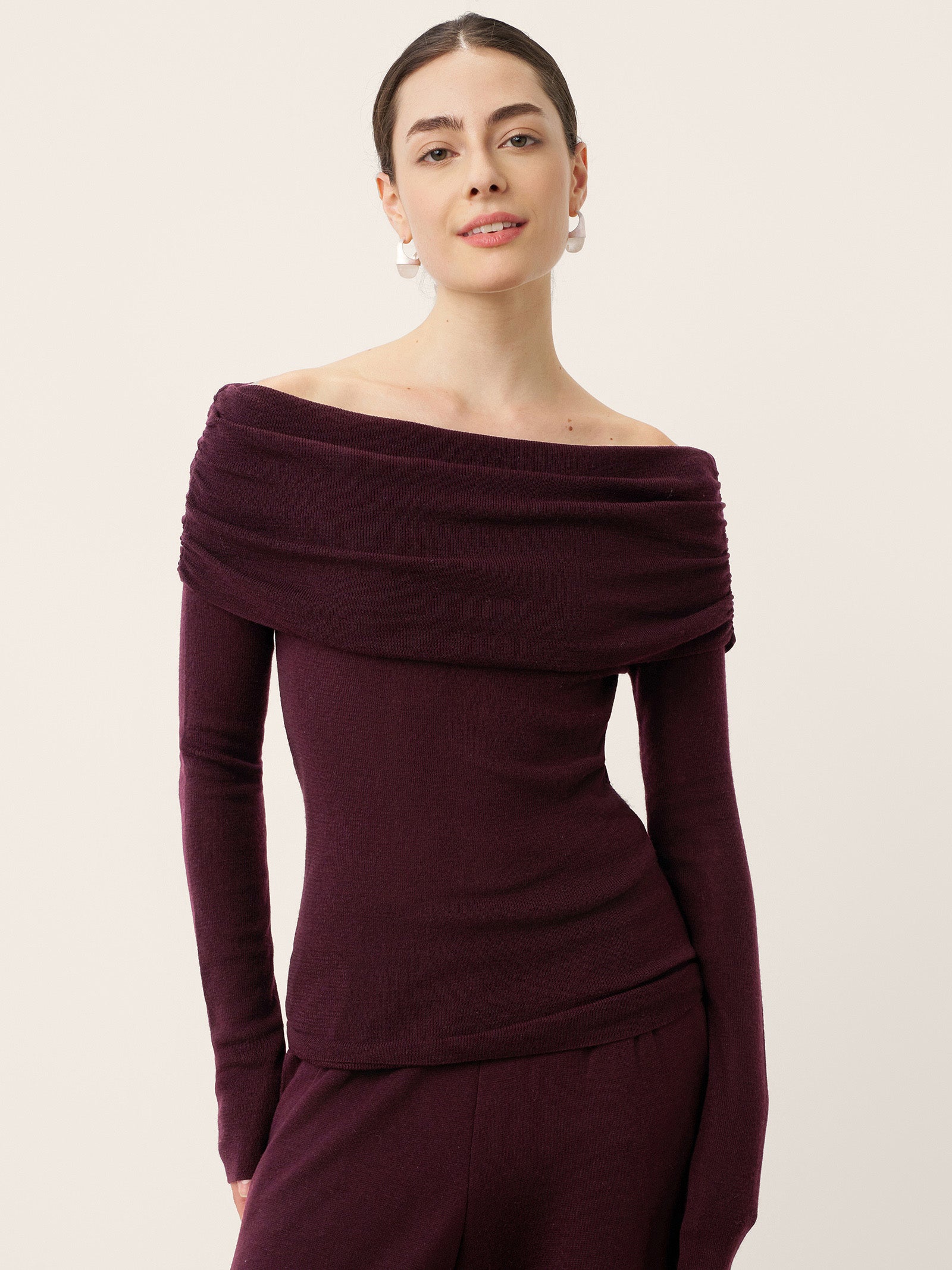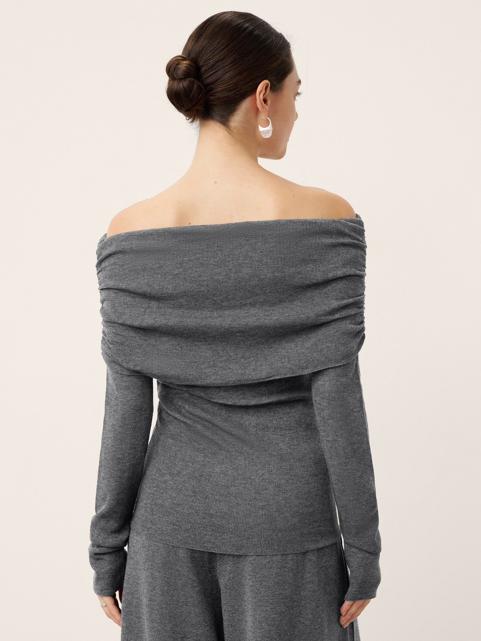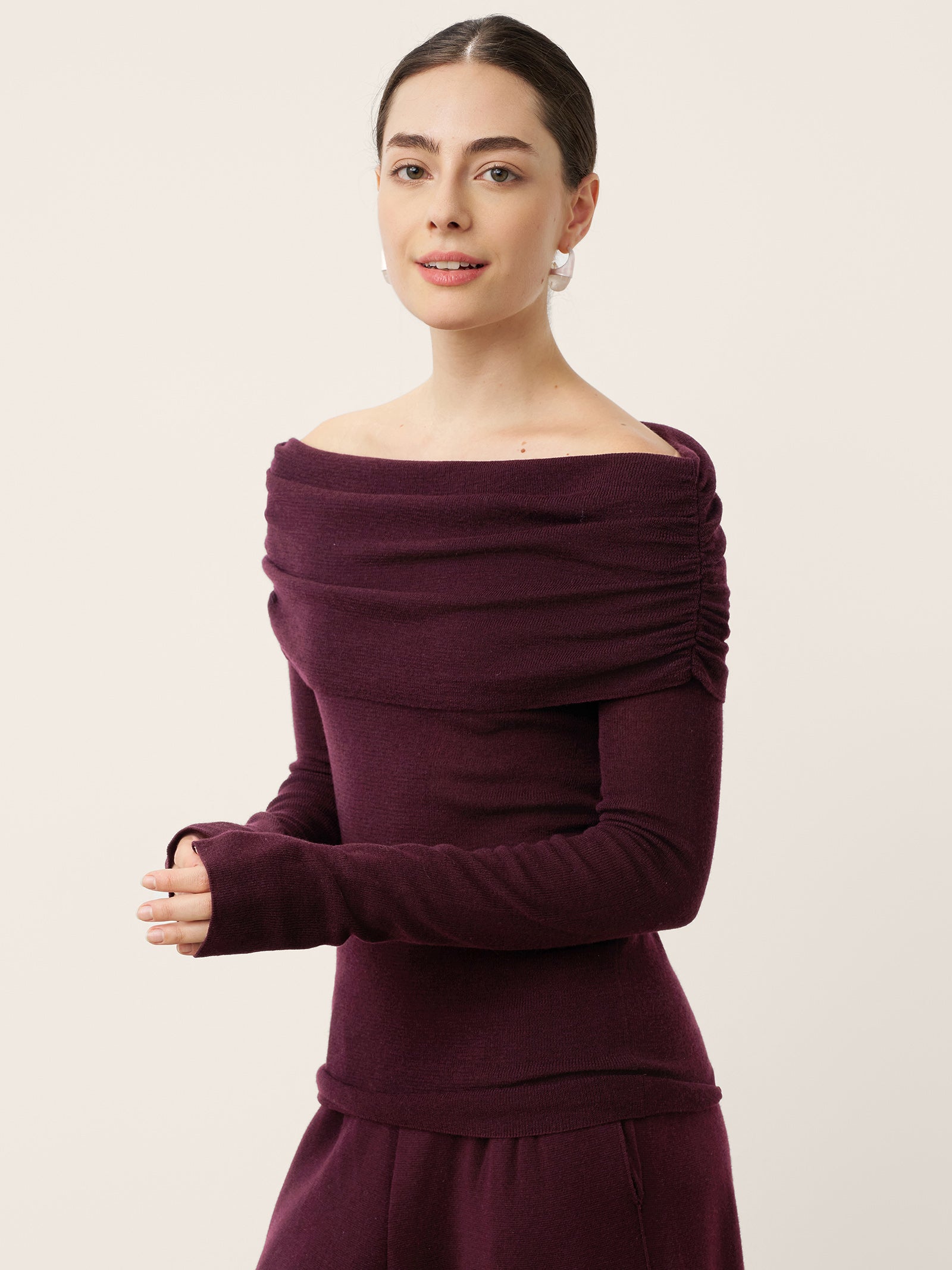Merino Wool Oversized Lapel Convertible Off-Shoulder Top XYLIA