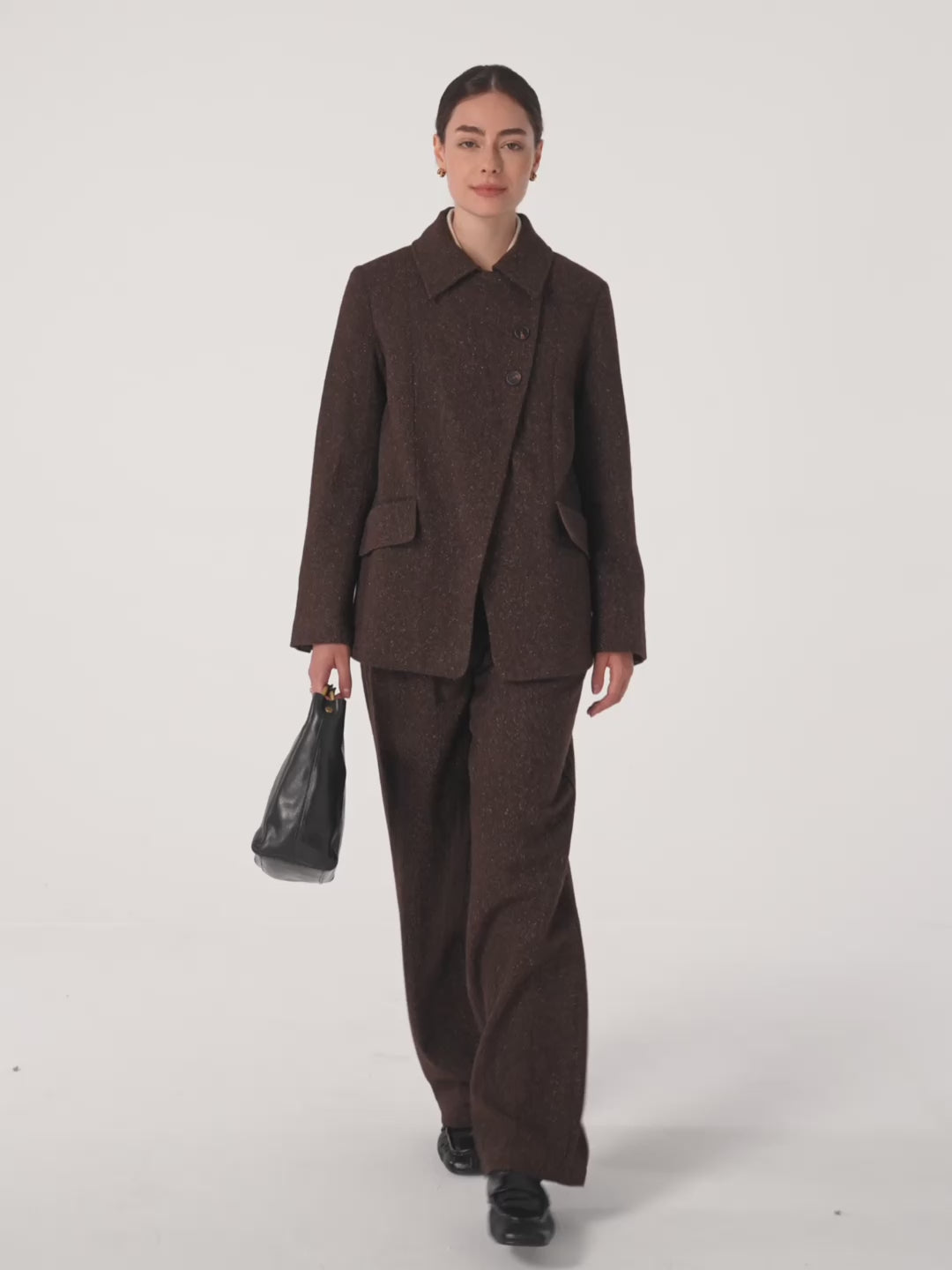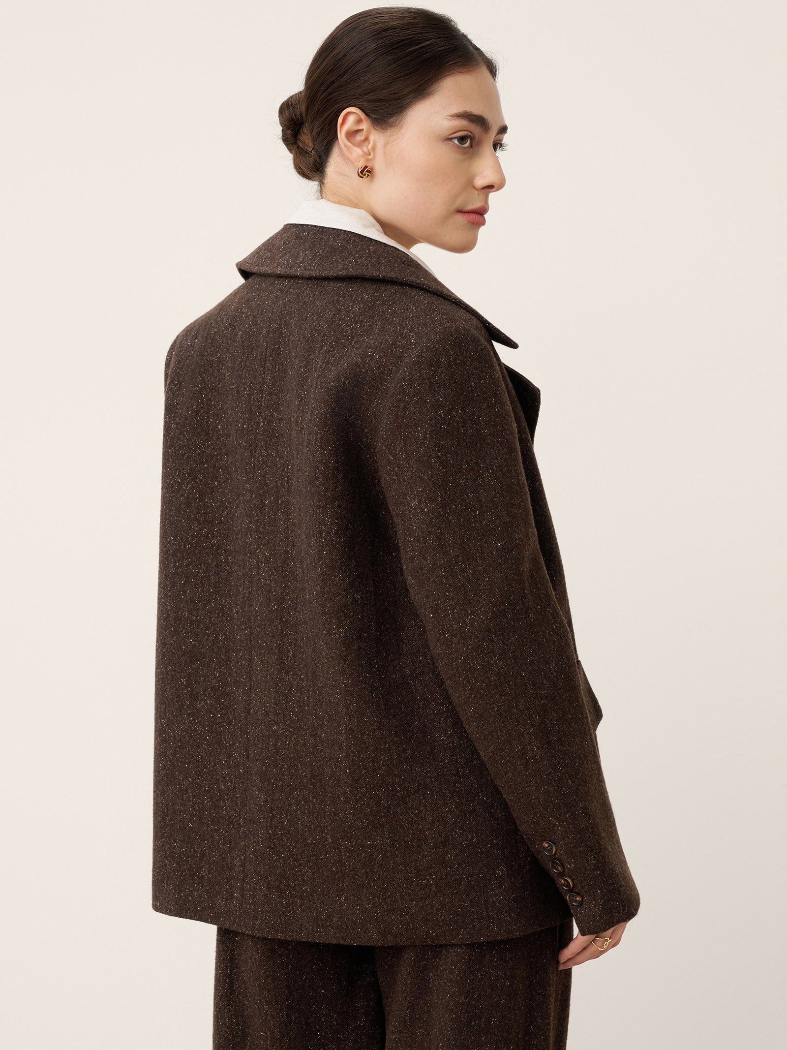 Wool Silk Asymmetric Lapel Double-Breasted Jacket XANTHE