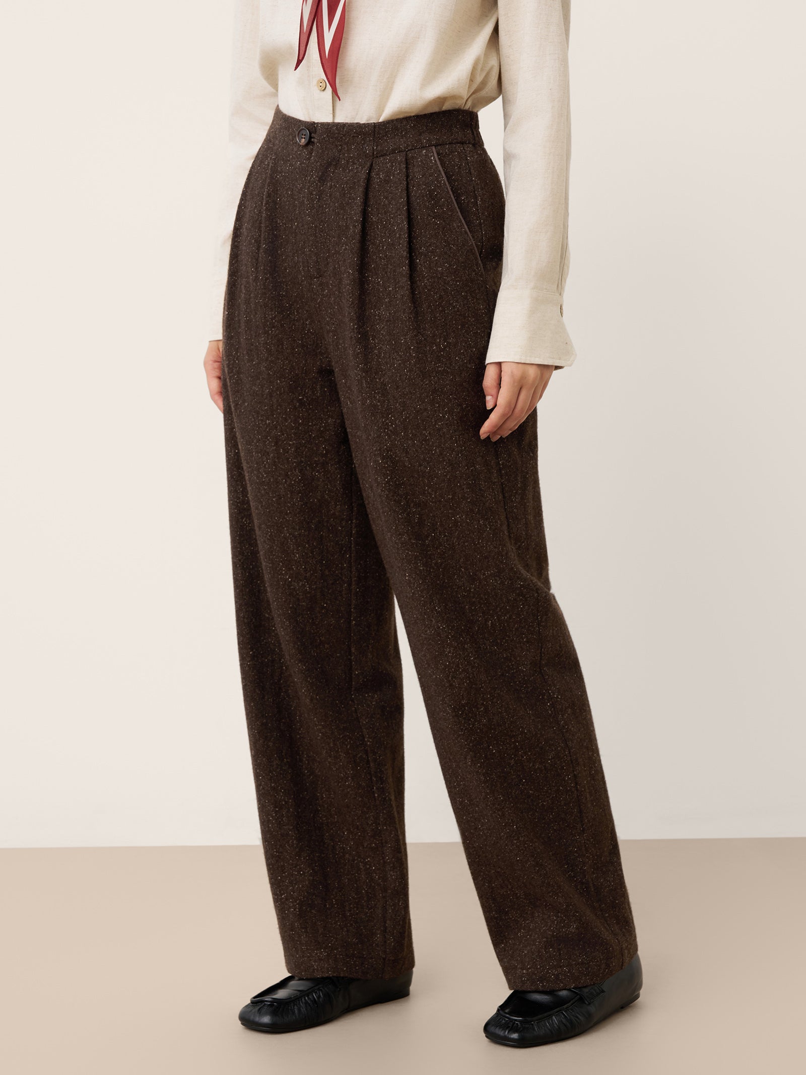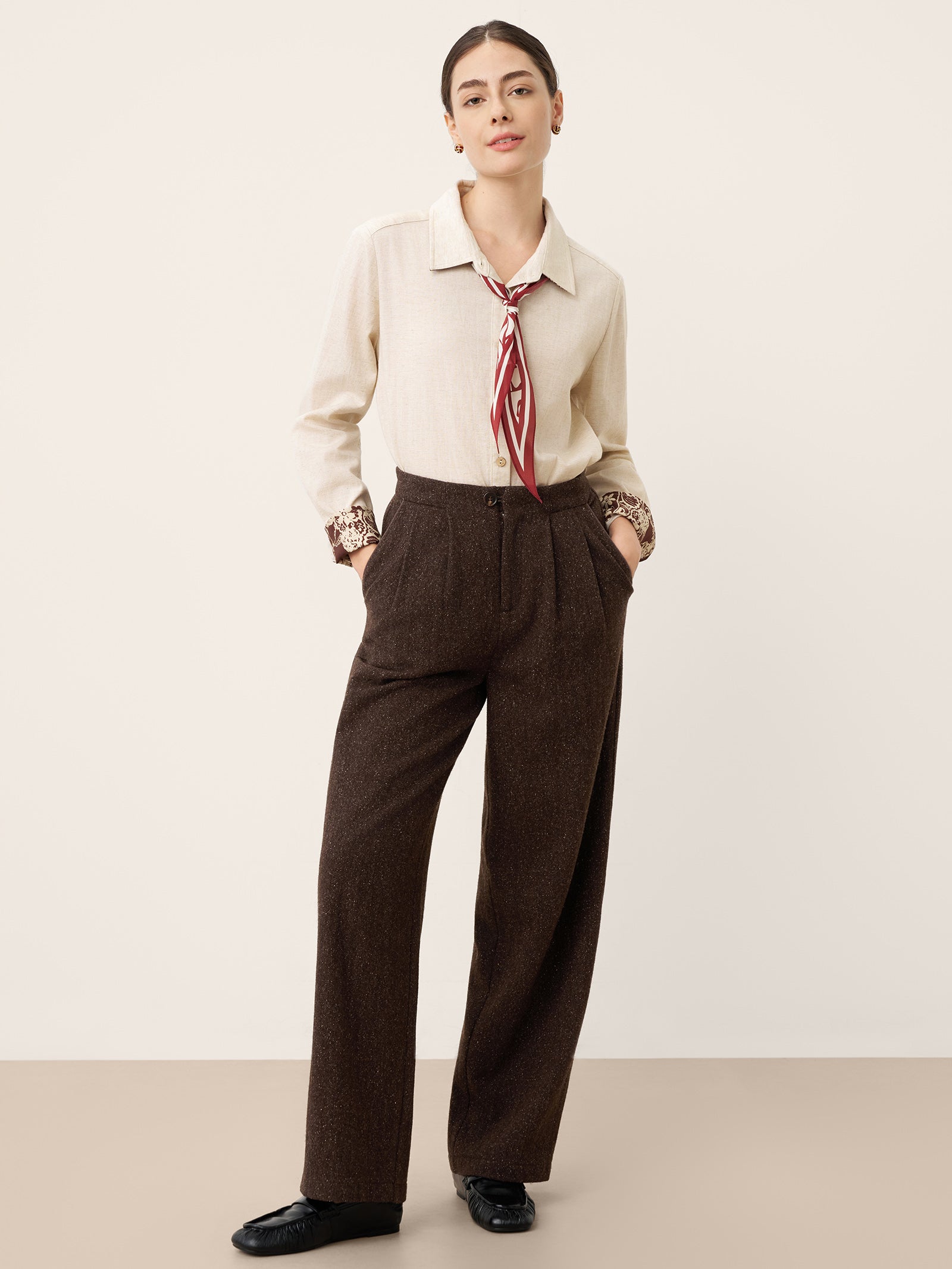 Wool Silk Inverted Pleat Straight-Leg Trousers FLEUR