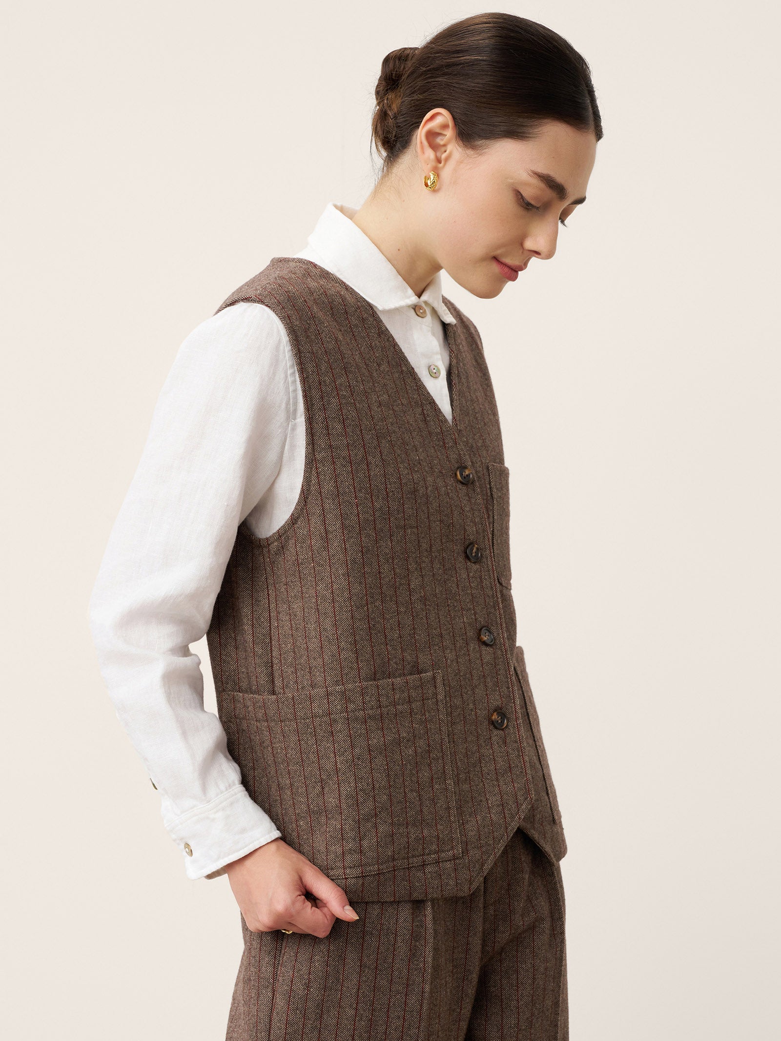 Wool Striped V-Neck Button-Detail Vest ELUNED