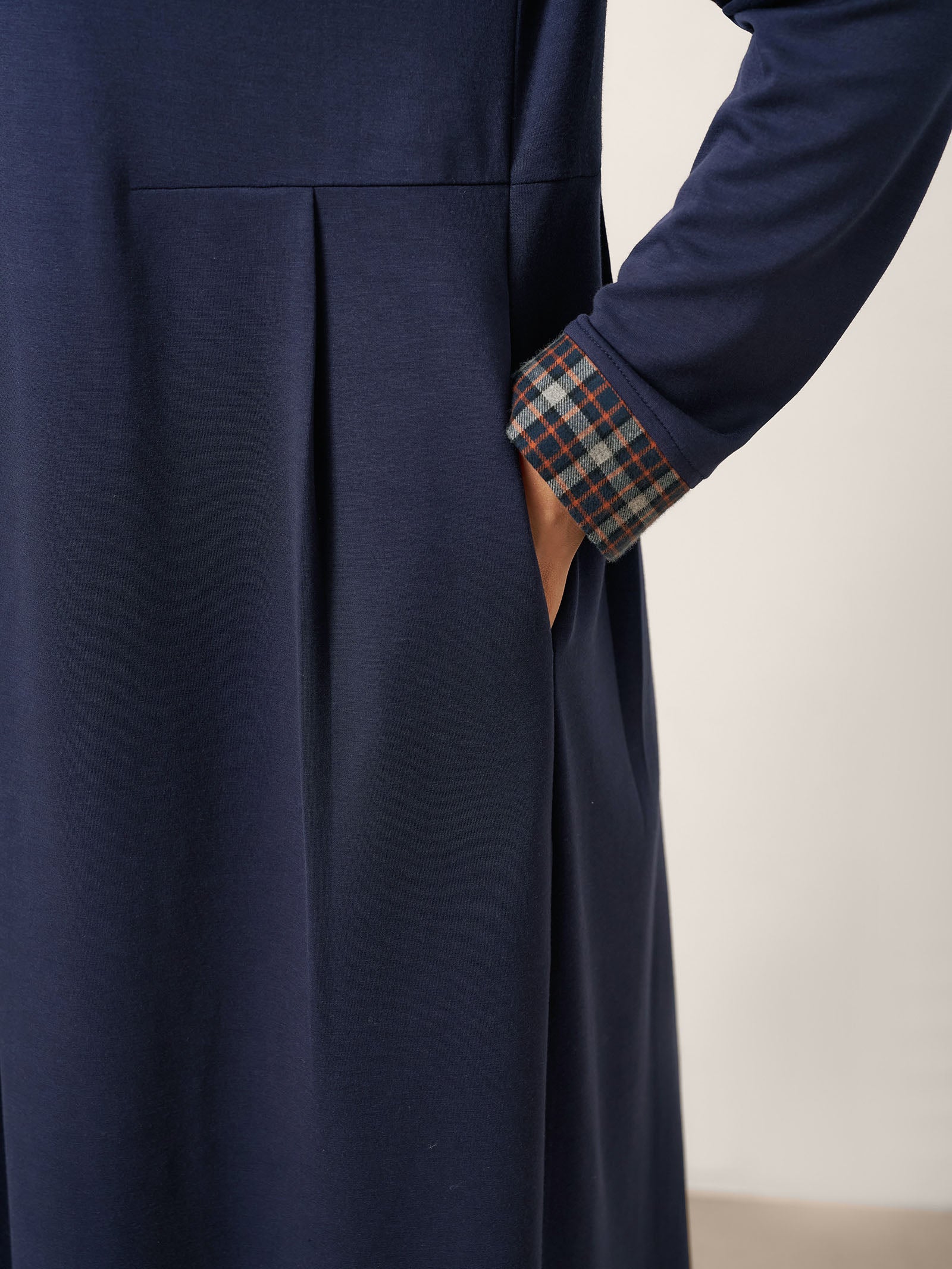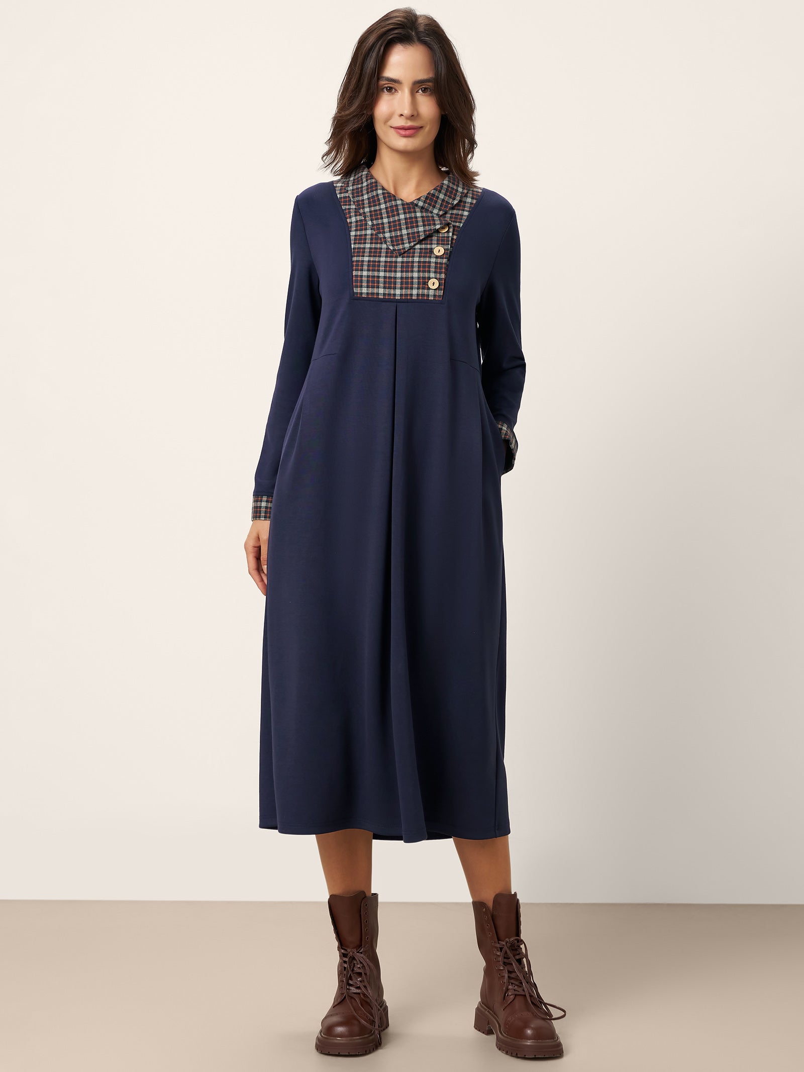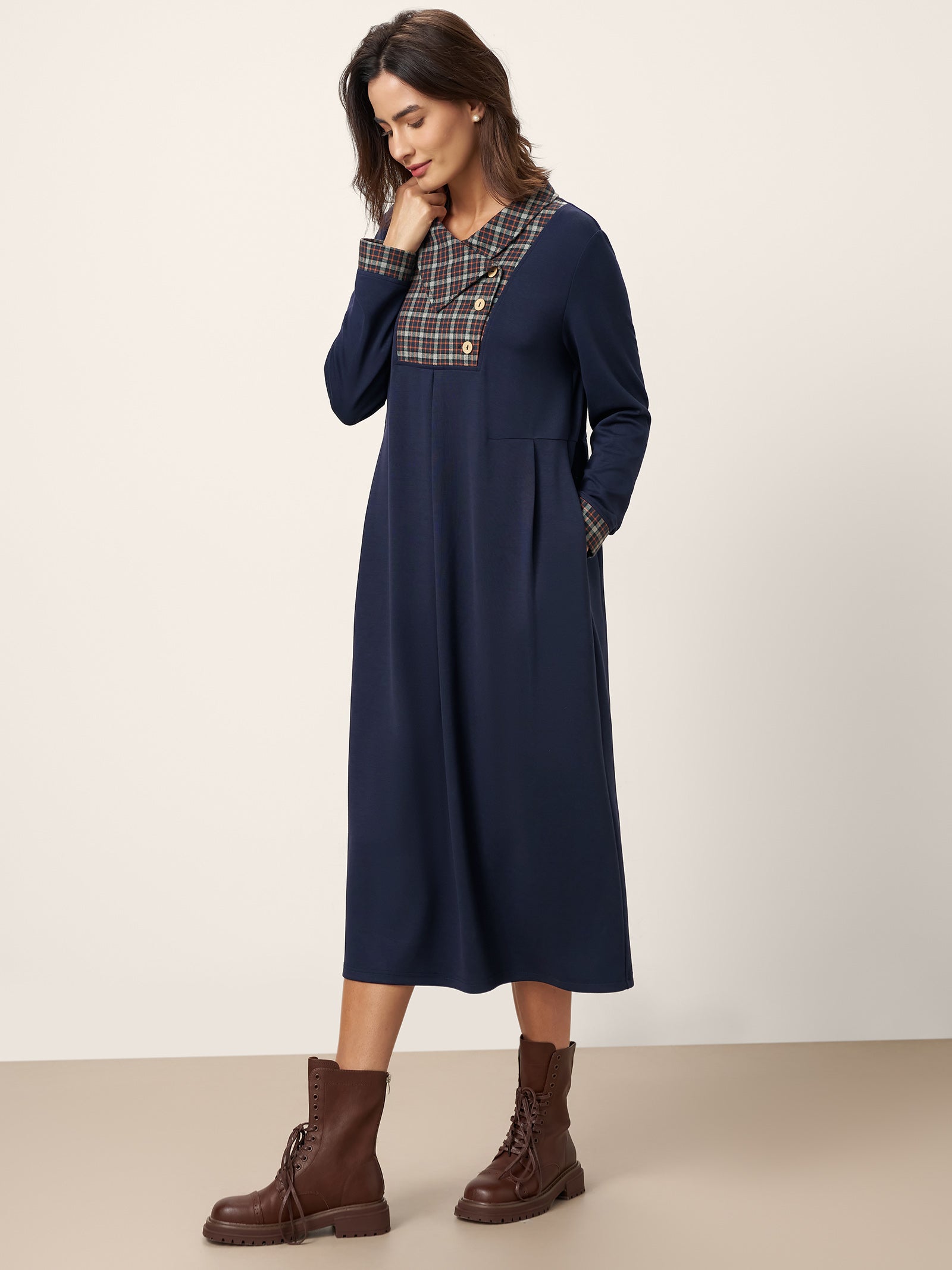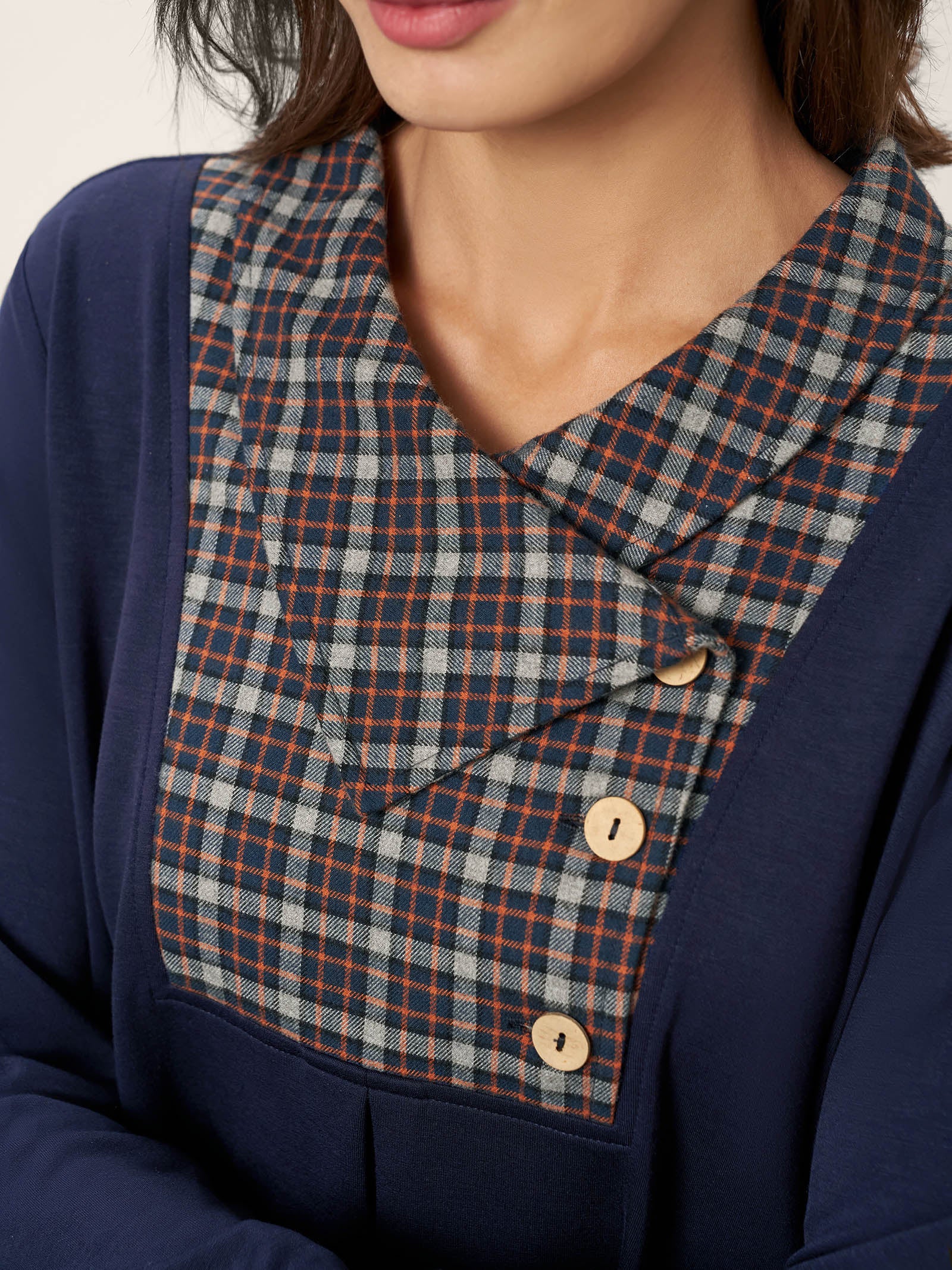 - Artful Asymmetry: Unique diagonal placket and textured gingham collar contrast solid jersey, creating visual intrigue that flatters