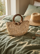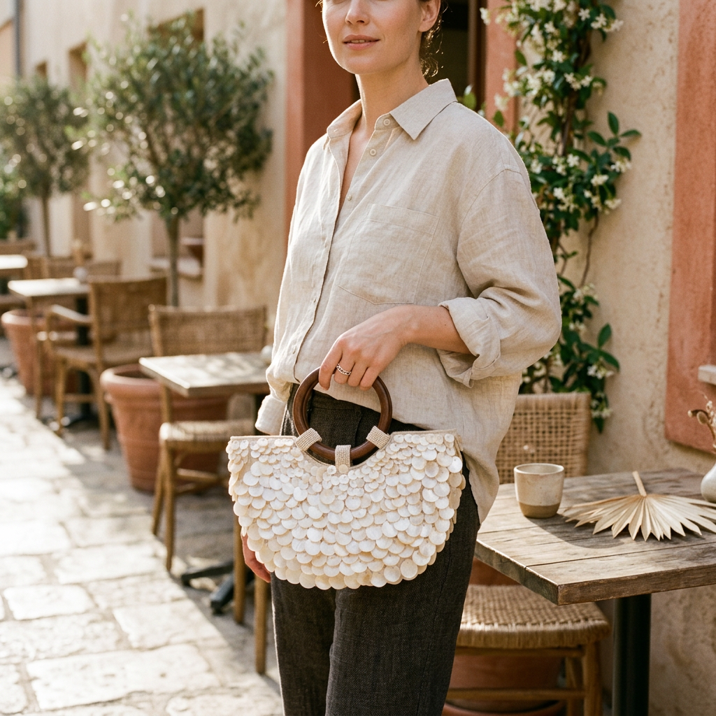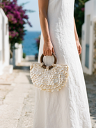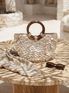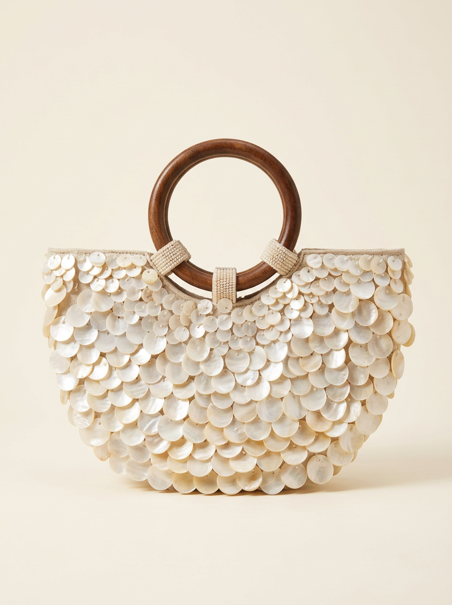 Handmade Shell Handbag Pearl Shell Tote Bag with Wooden Handle