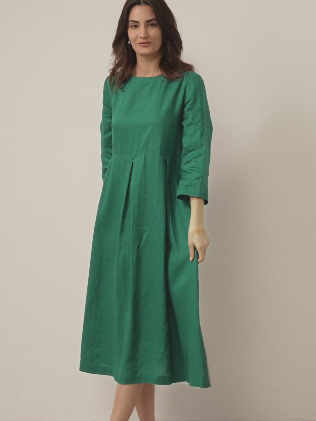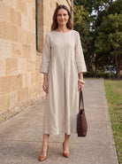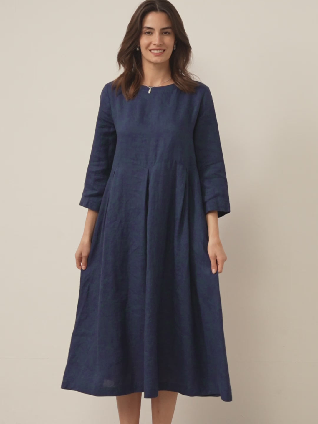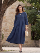 100% Linen Bateau Neck Pleated Maxi Dress ABIGAIL