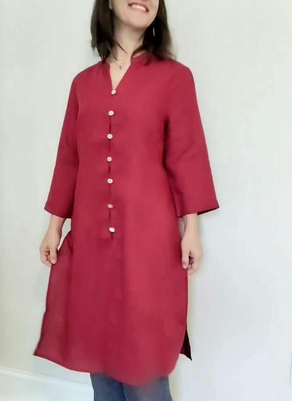 100% Linen Hand Button Long Top DILLON
