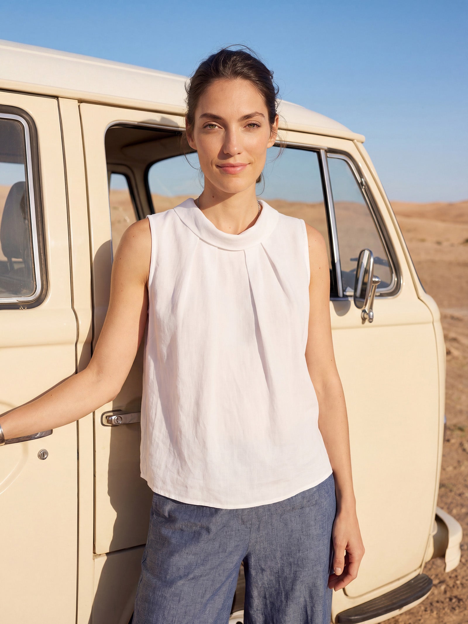 100% Linen Structured Collar Sleeveless Blouse BLAIR