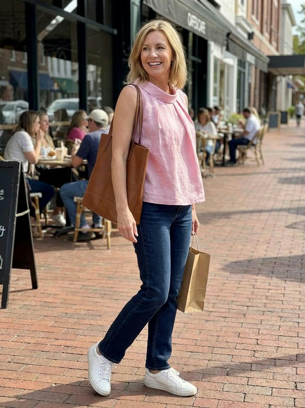 - Casual Cool: High-waisted denim shorts + white sneakers under a lightweight linen blazer