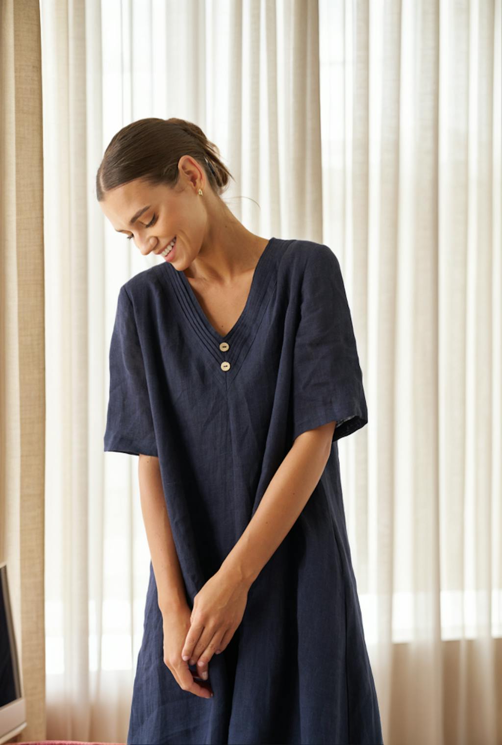 Made from pure flax, our linen lacks elasticity, resulting in natural wrinkles when worn or slept in. Embrace the 'lived-in luxe' aesthetic — a deliberate, carefree rumpled look that exudes quality. Our linen is garment-washed before it gets to you though, so you should experience minimal shrinkage.