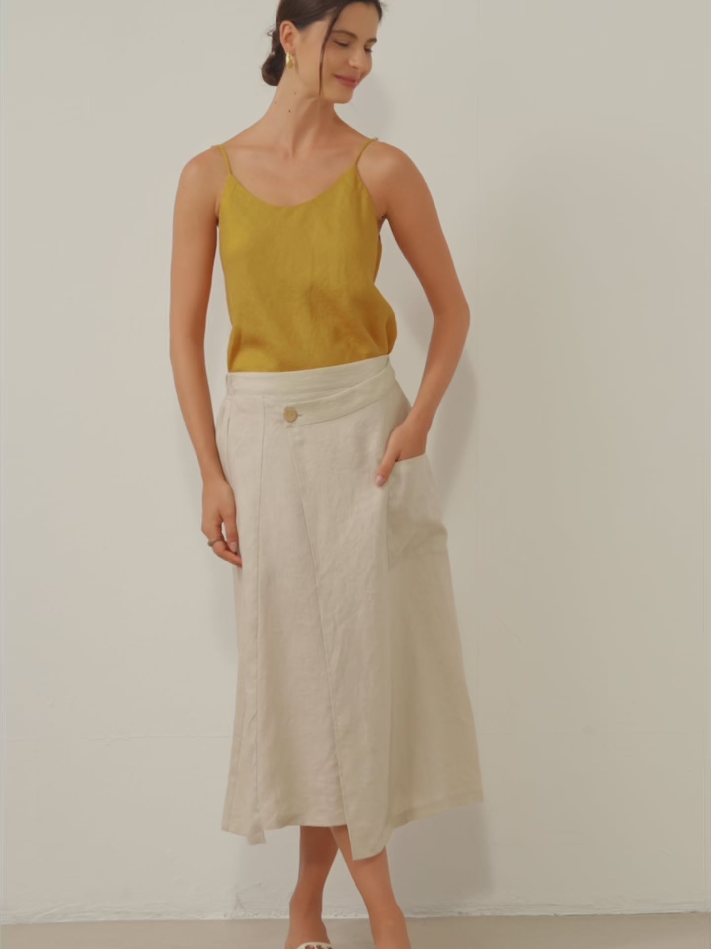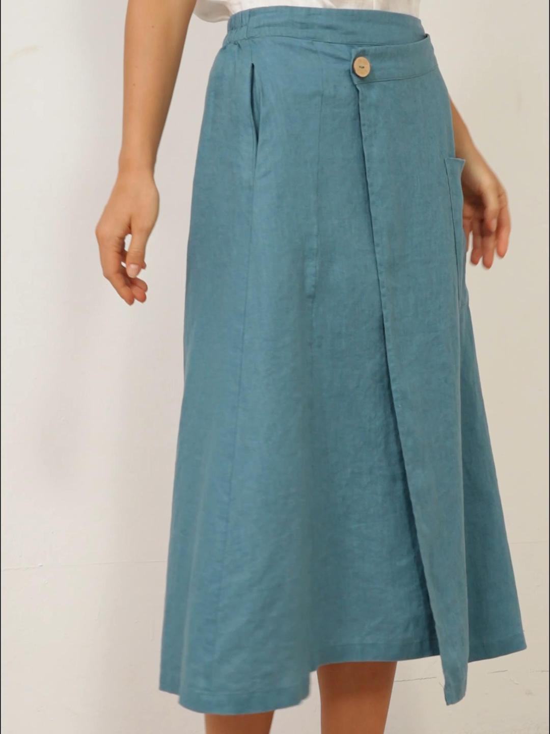 100% Linen Angled Closure Wrap Skirt FRESSA