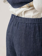 100% Linen Denim Texture Elastic Waist Straight Leg Pants HAZEL