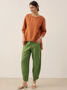 100% Linen Petal-Hem Trousers with Elastic Waist LIV