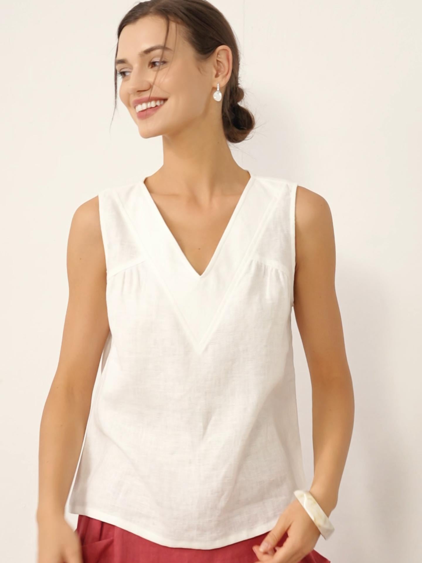100% Linen V-Neck Sleeveless Tank Top NICOLE