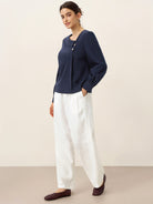 - Off-Center Wooden Button Placket: Adds artisanal detail and easy on/off functionality