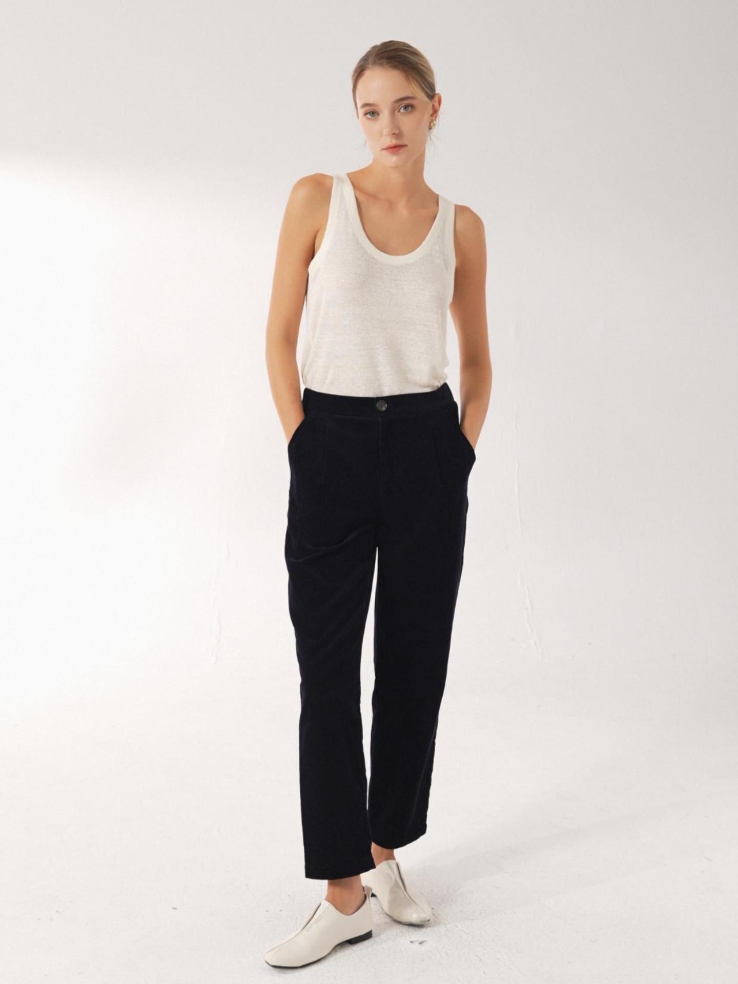 Classic tapered carrot fit made from soft American Pima cotton corduroy for a flattering, comfortable silhouette.