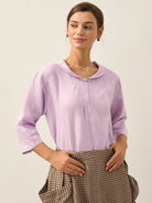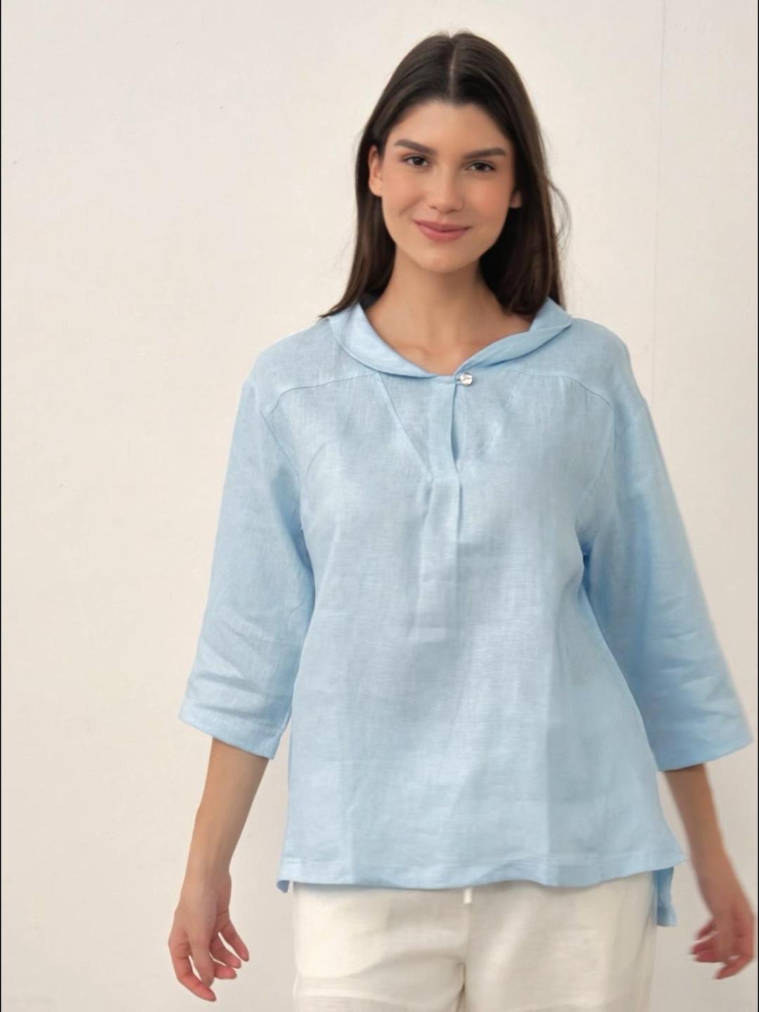 100% Linen Shawl V-Neck Half Sleeve Top JADE