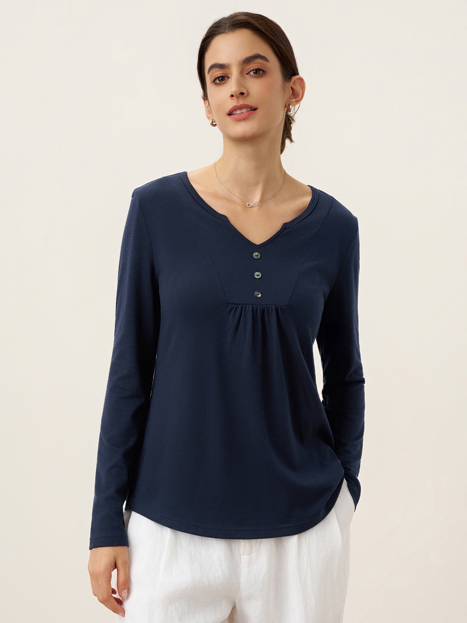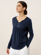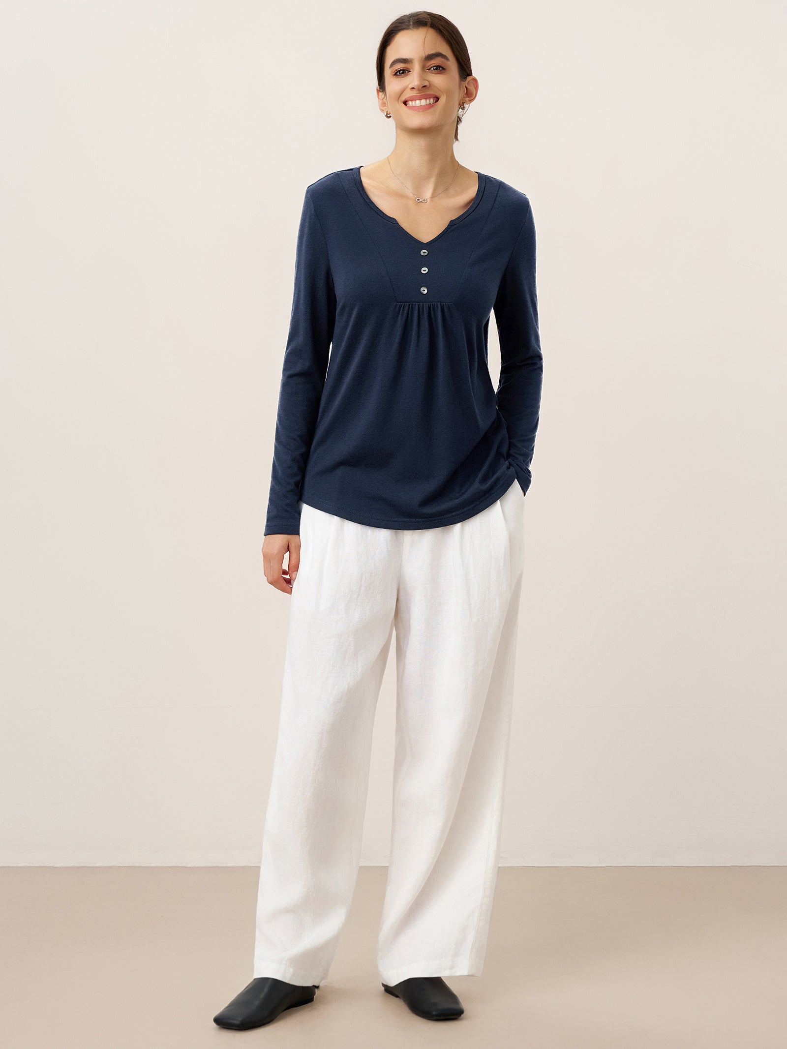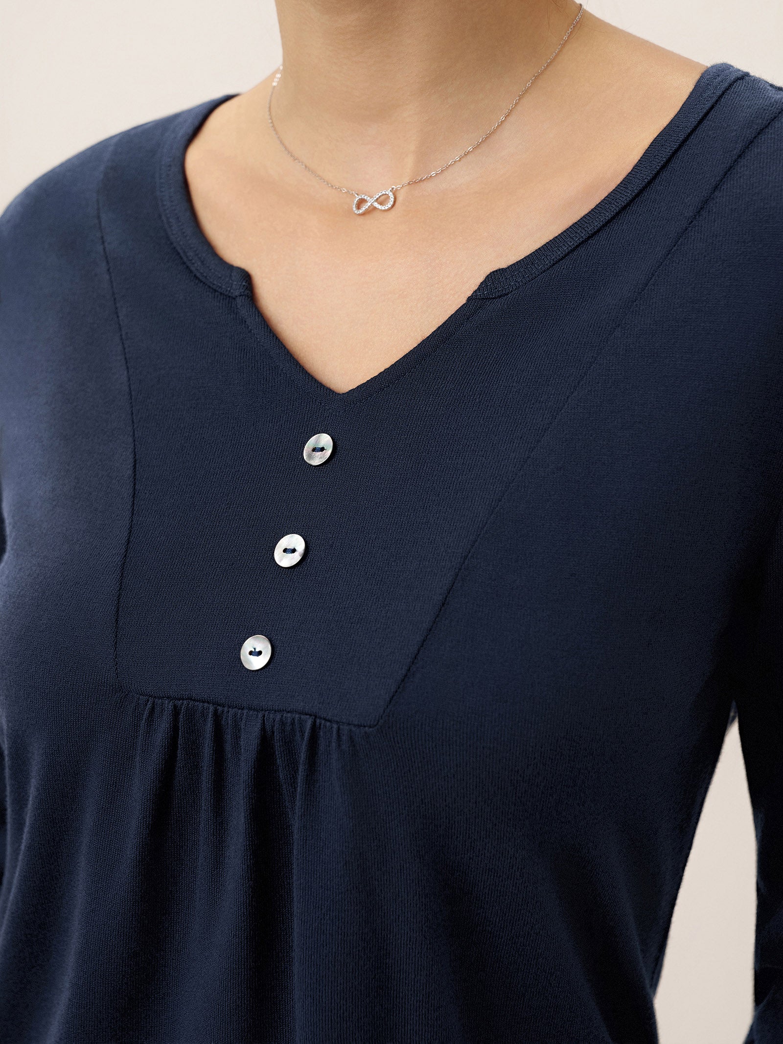Bamboo Viscose Textured Pleated Shell Accent Stretch Top ZINNIA