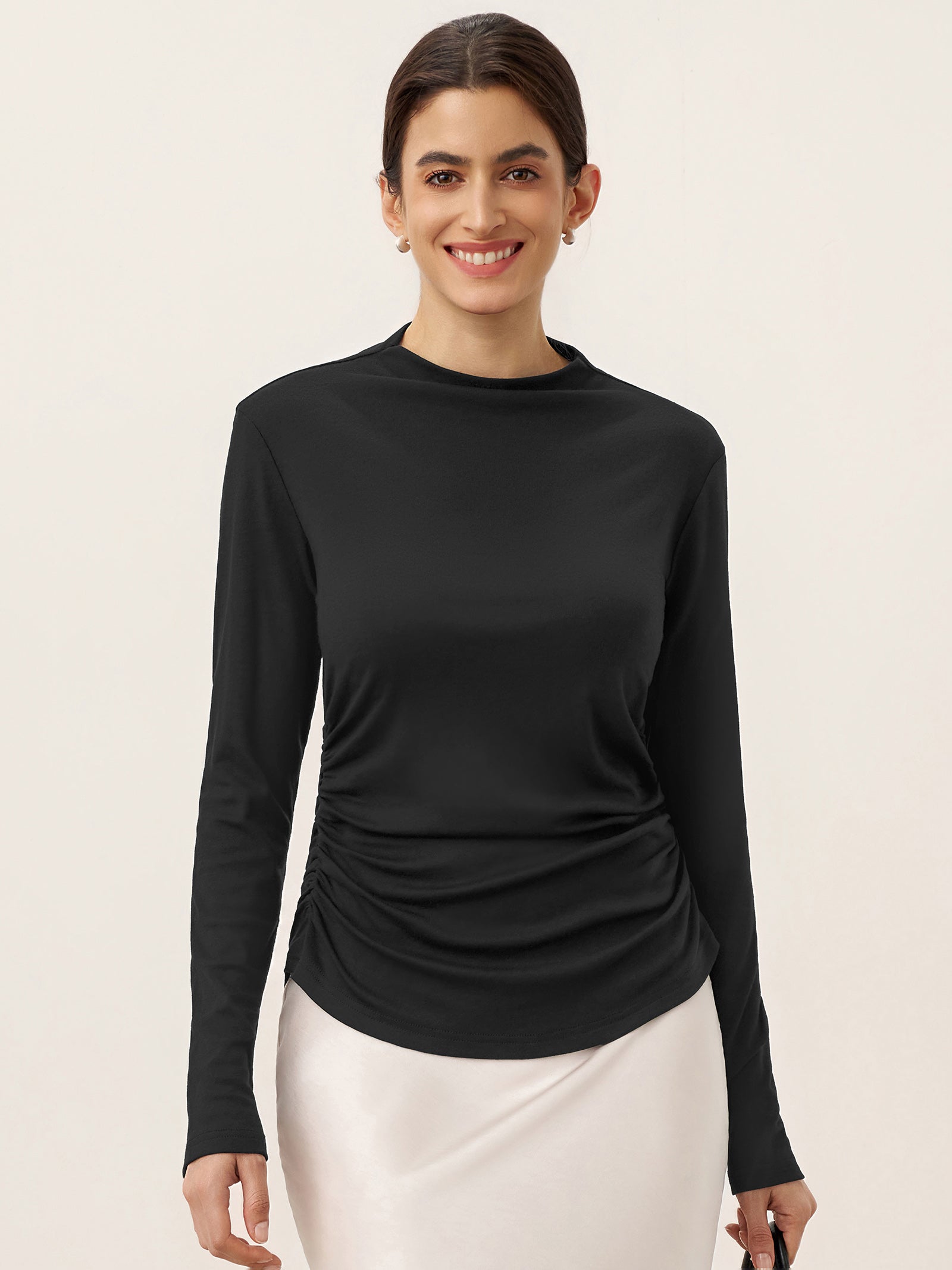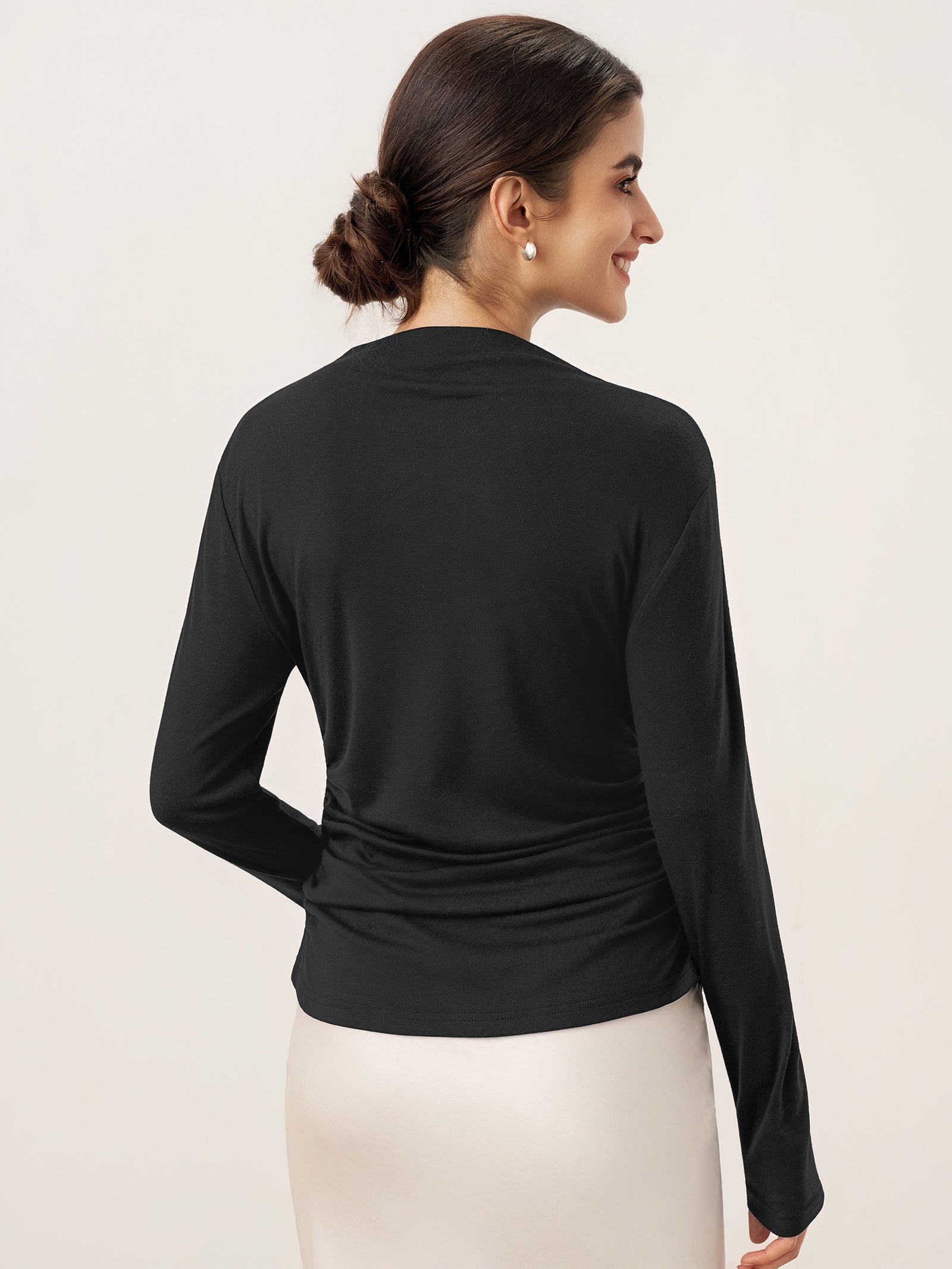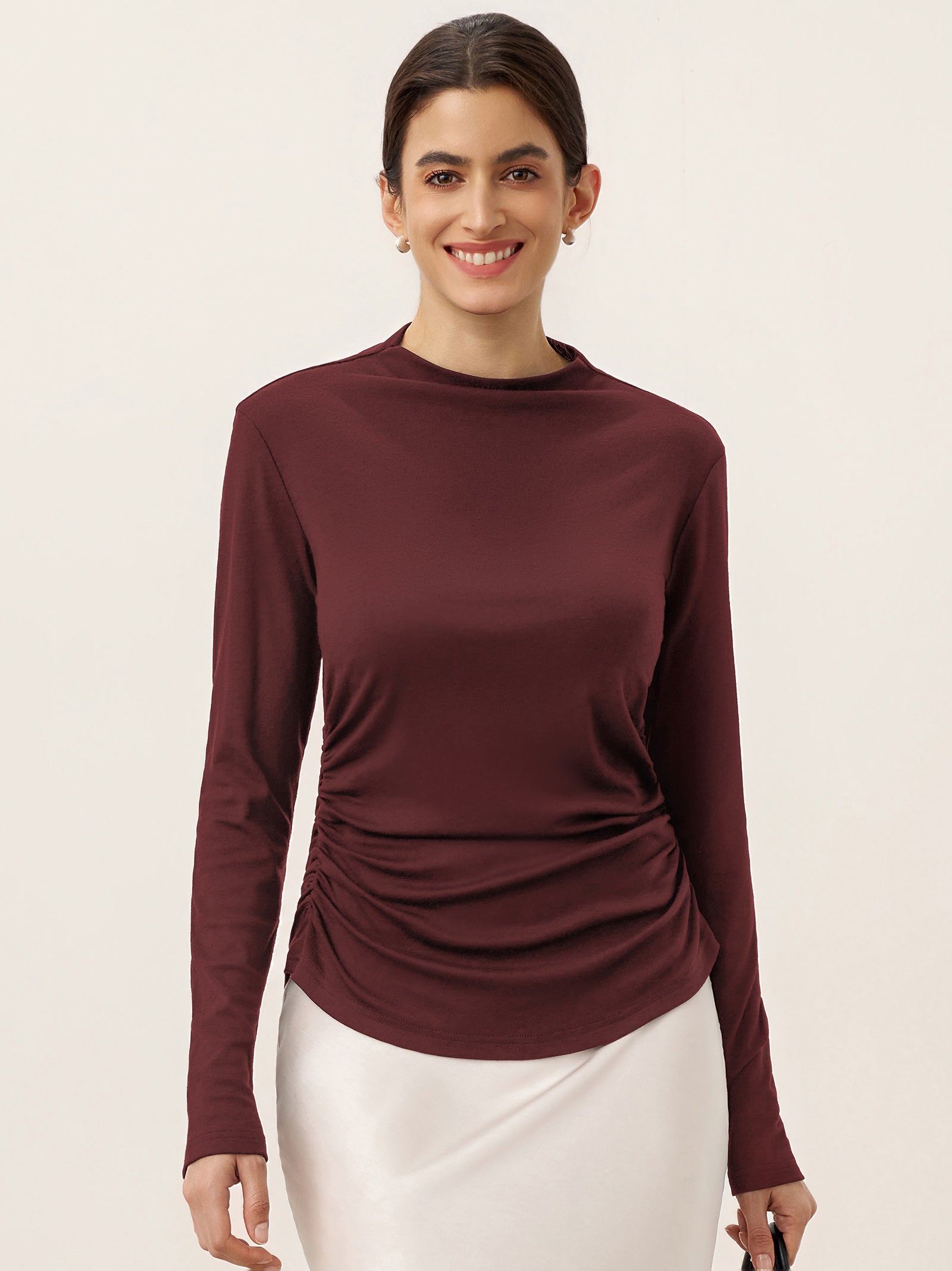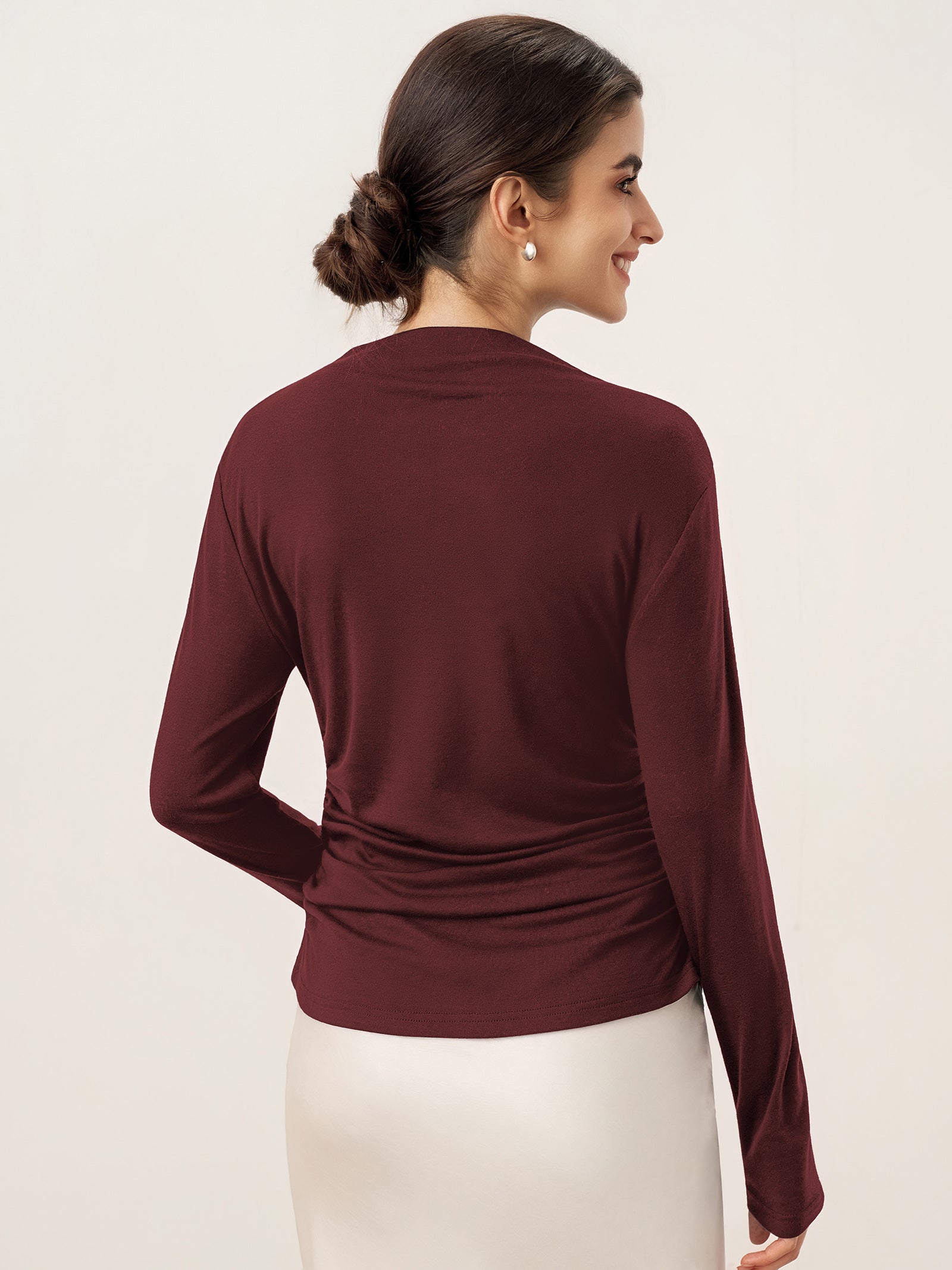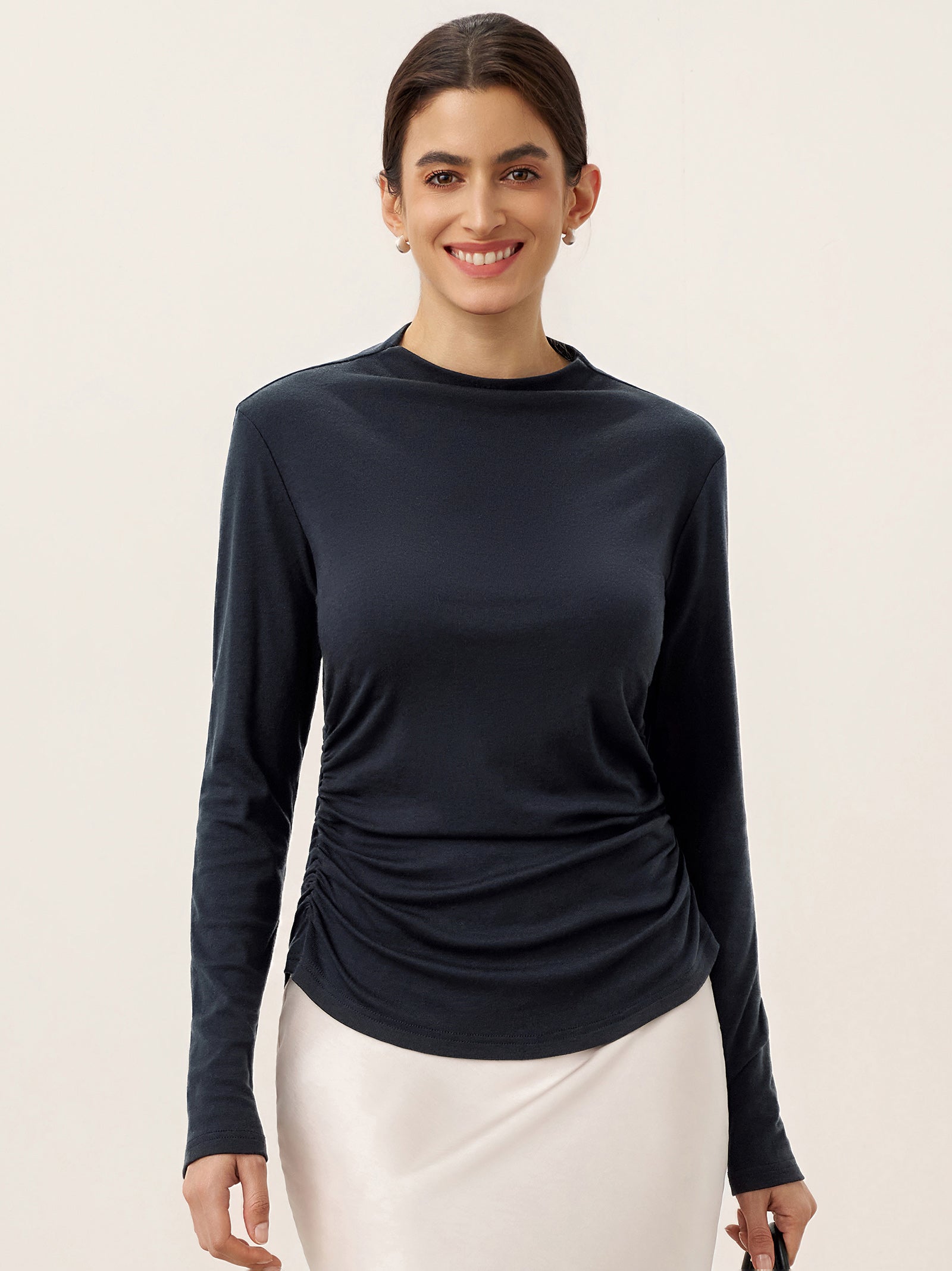 Wool Mock Neck Waist Pleat Top ISOLDE