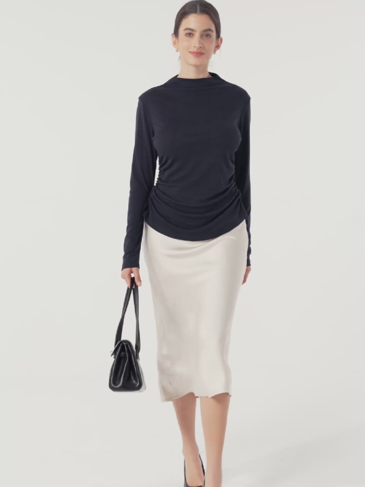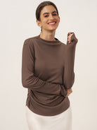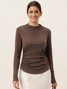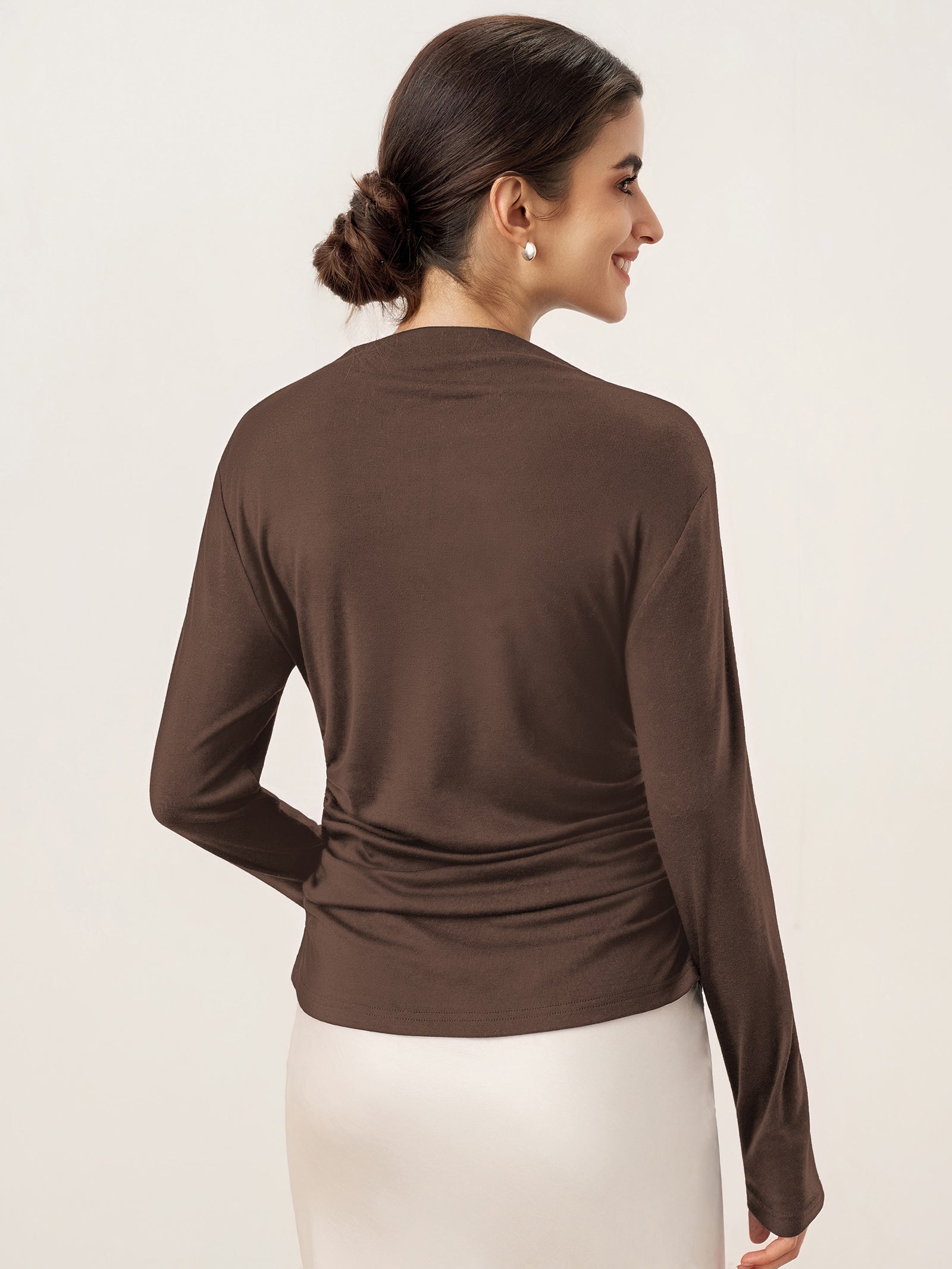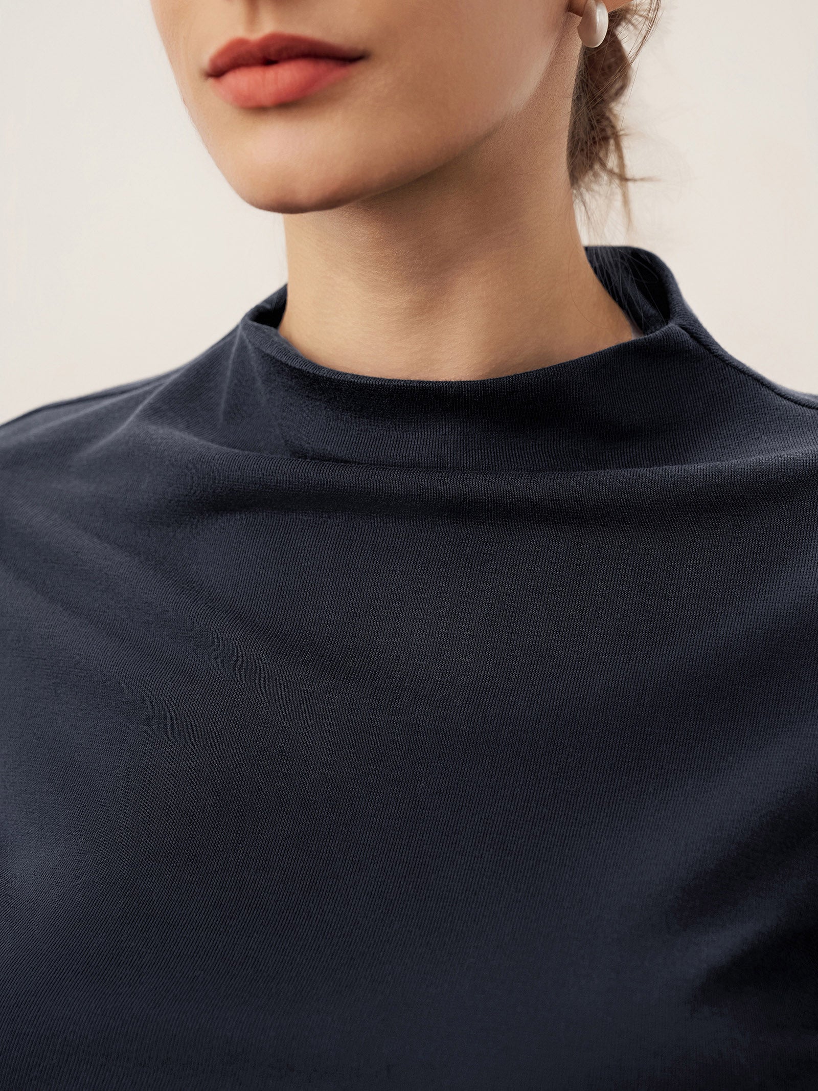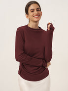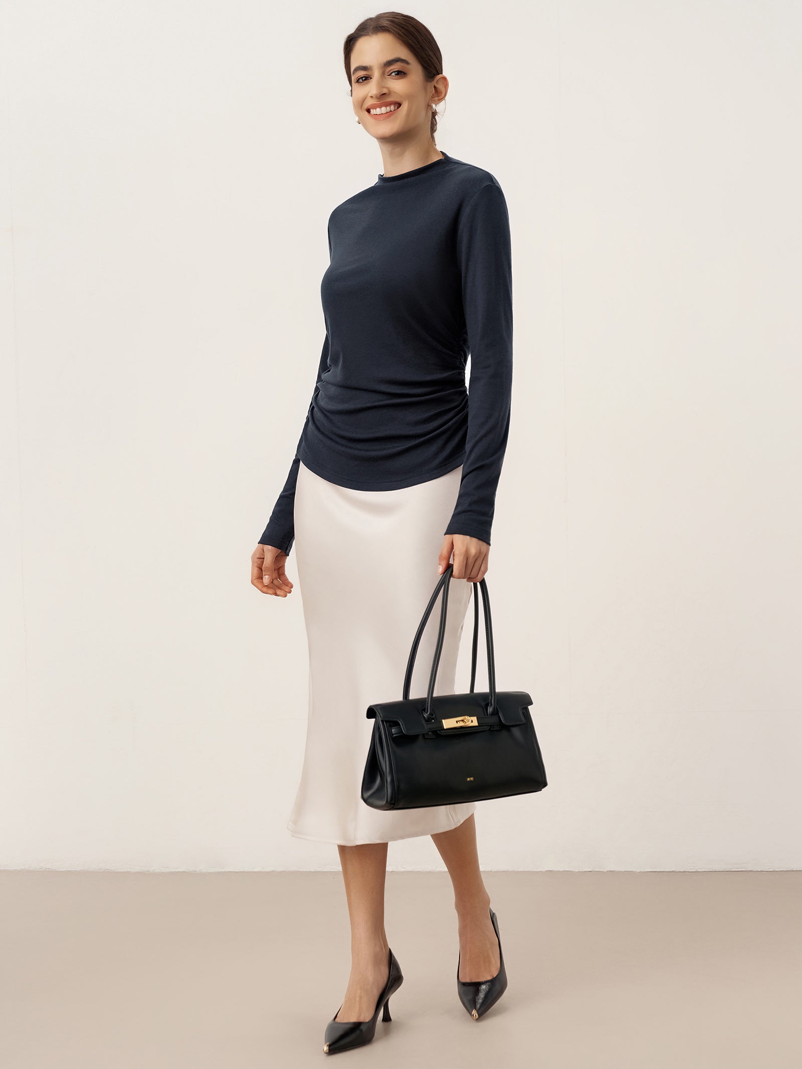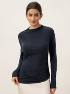 Wool Mock Neck Waist Pleat Top ISOLDE
