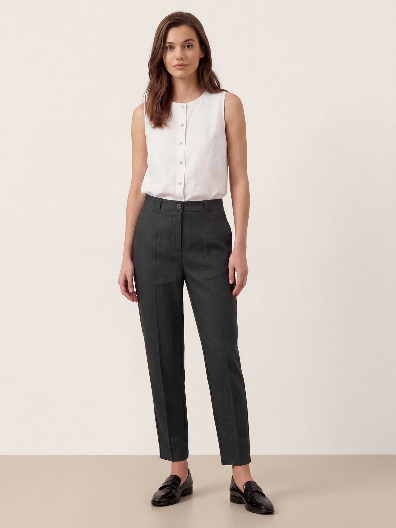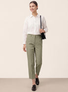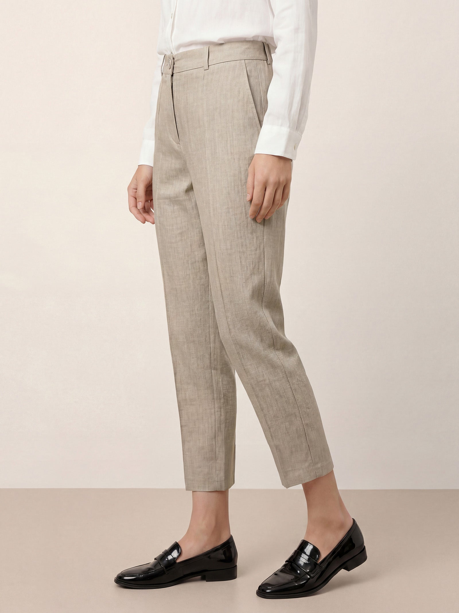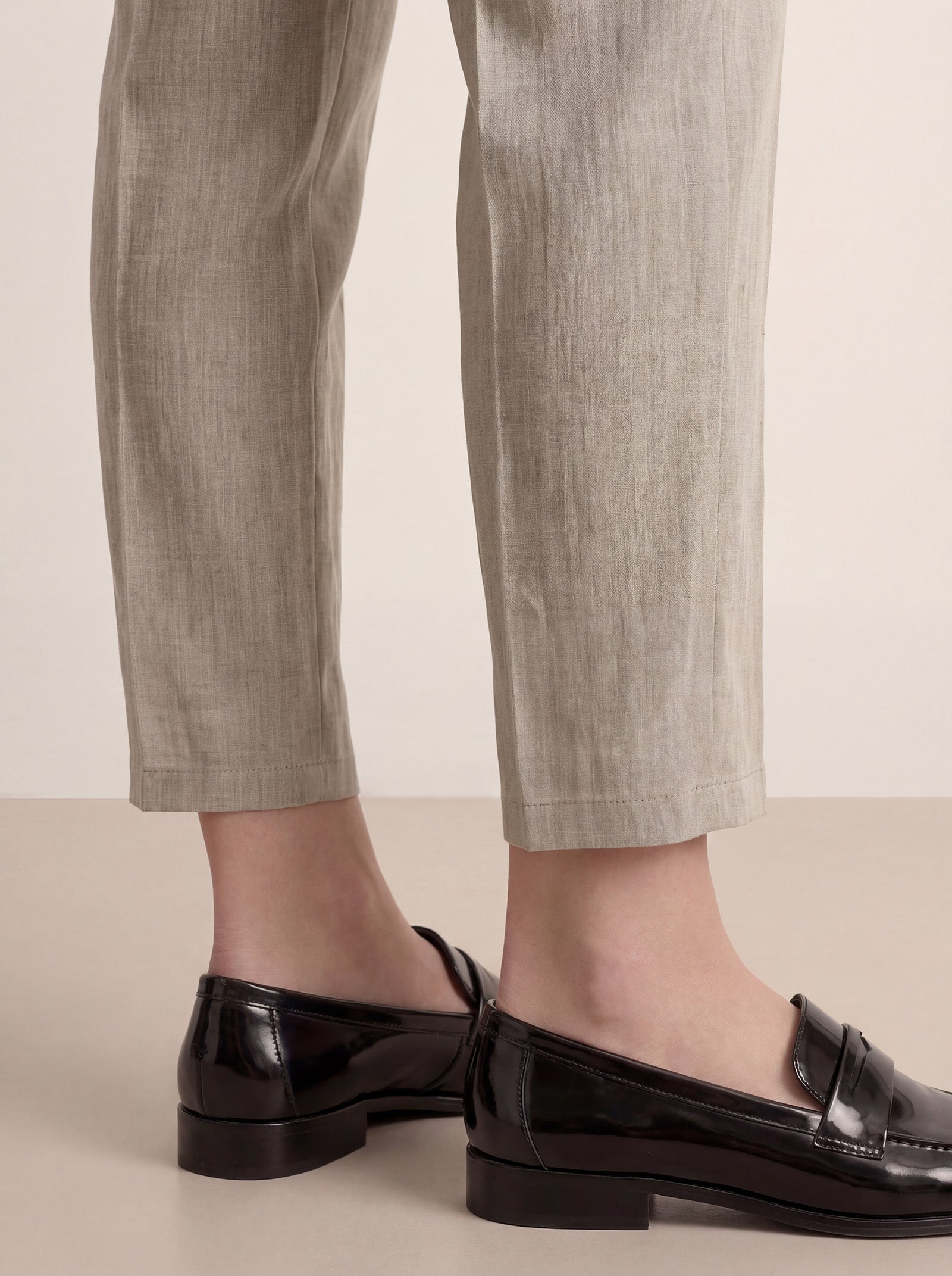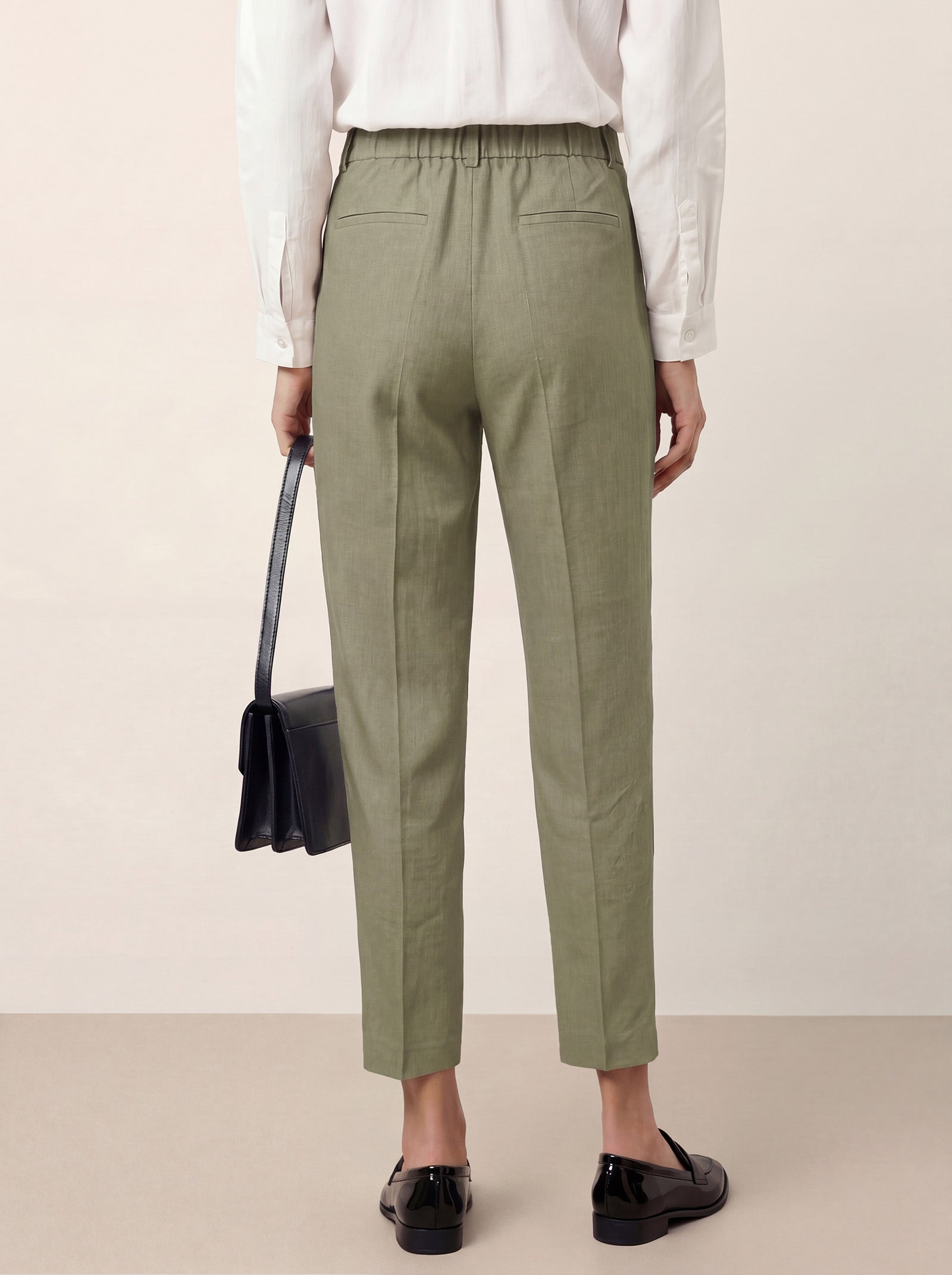 Linen Pull-On Mock-Fly Straight Cropped Pants LOGAN