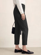 Designed for effortless wear with a polished, tailored look, this pull-on cropped trouser features a smooth elastic waistband and mock fly detailing for a true trouser read. Cut in a slim-straight fit, it keeps a clean line from desk to dinner and stays comfortable through long seated hours.