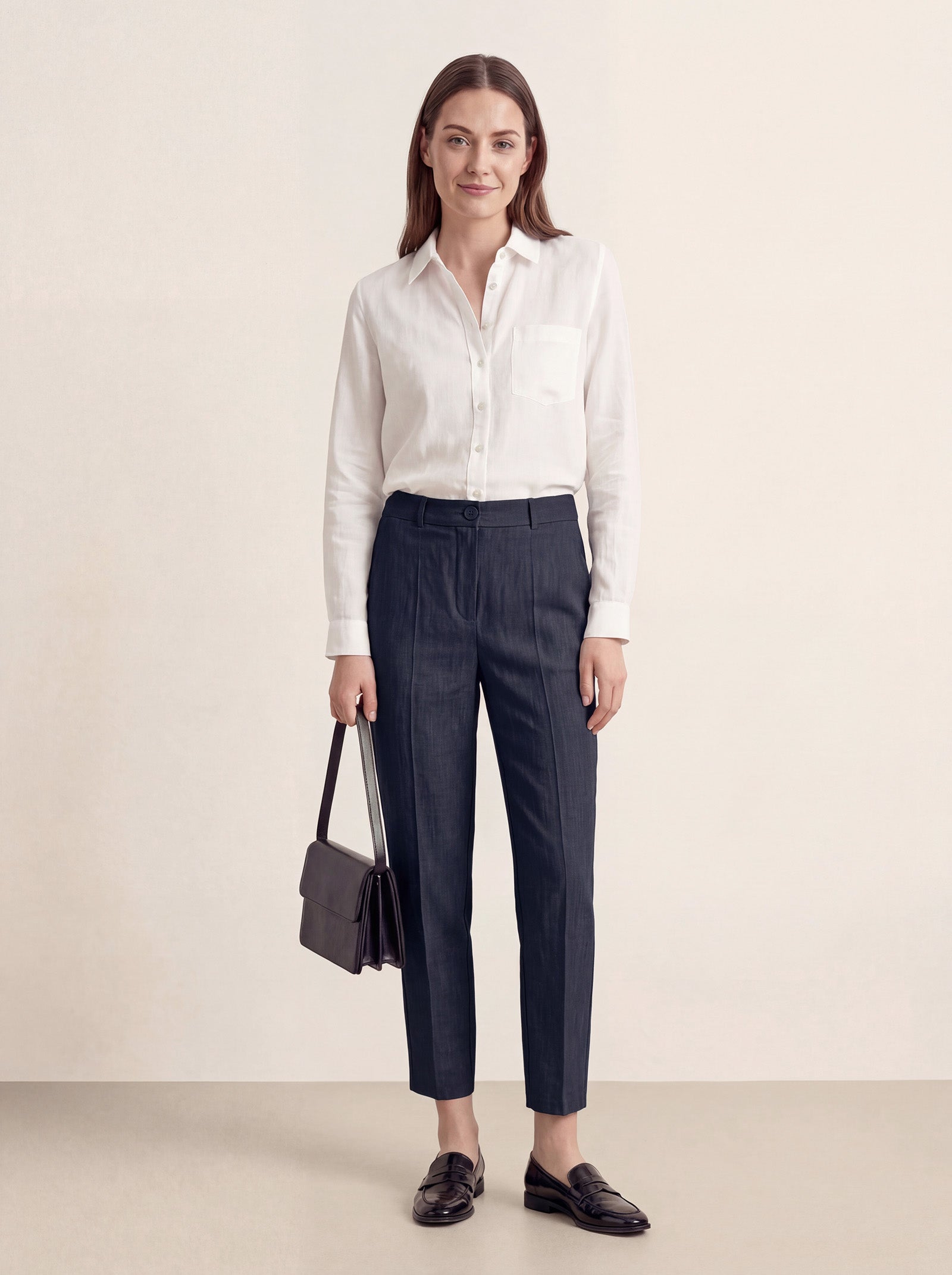 • Straight-leg, cropped length: A clean line from hip to hem—ankle-skimming and petite-friendly.
