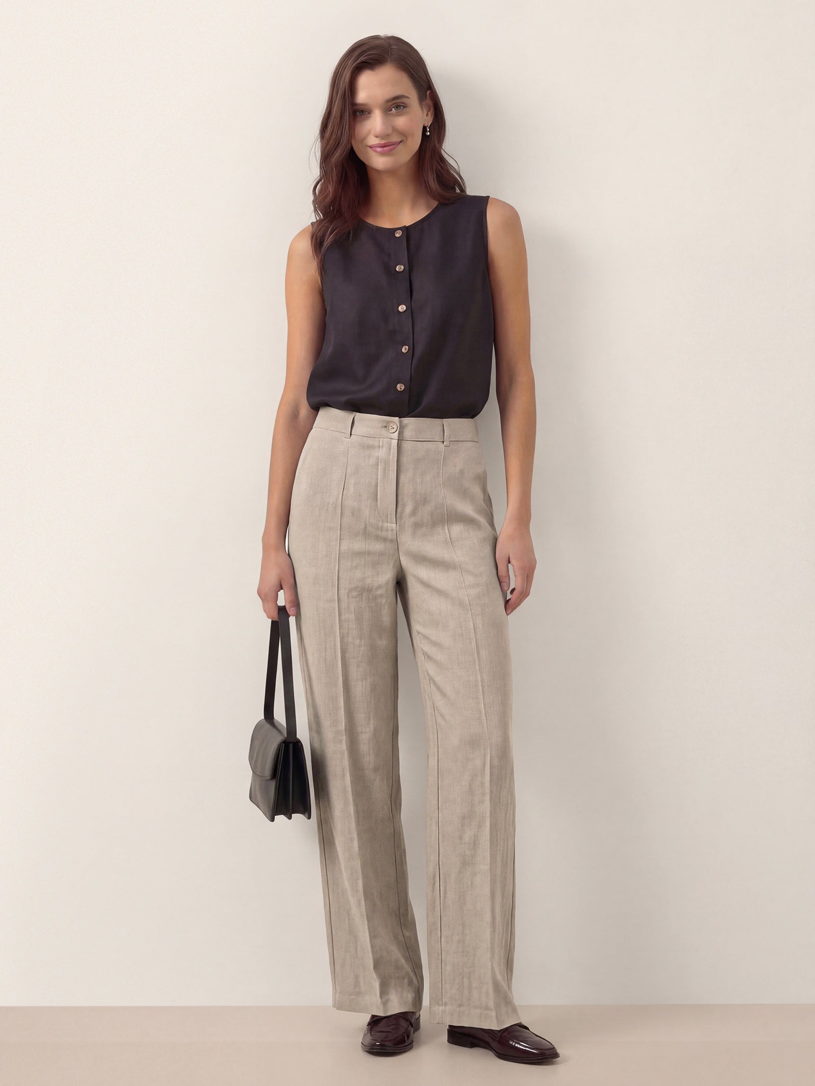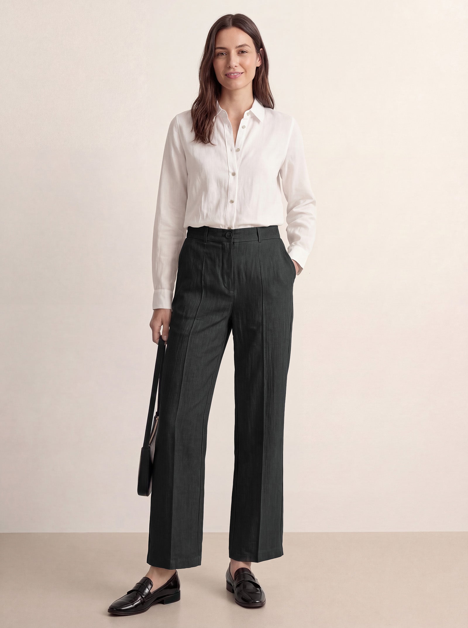 - Straight with a subtle wide leg, full length: A clean line with a little extra room—easy, modern, and elongating.
