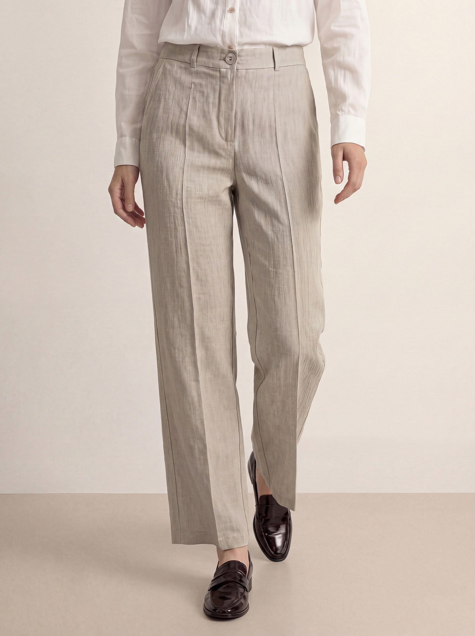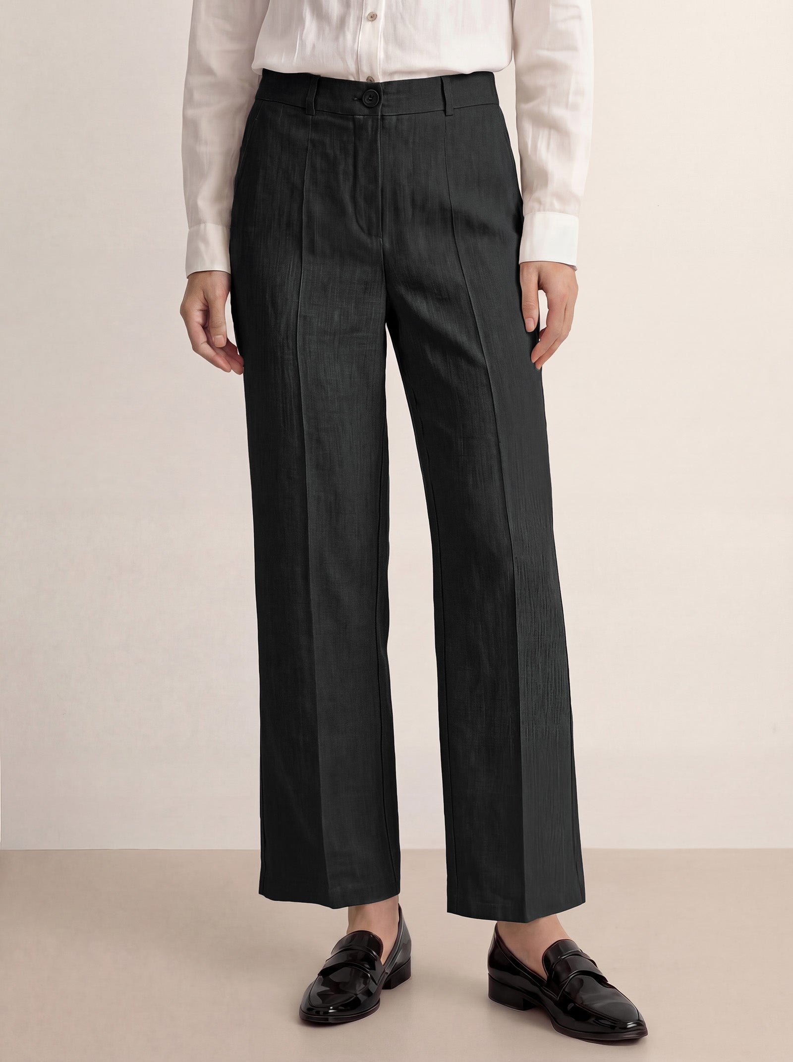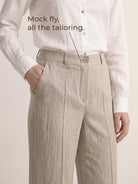 Linen Pull-On Mock-Fly Wide Leg Full Length Pants LEIGHTON