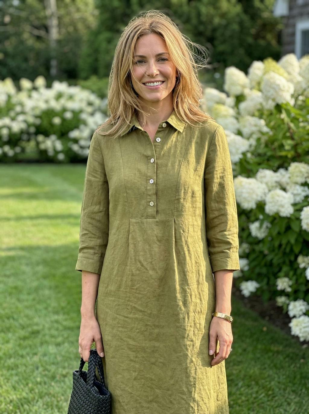 100% Linen Tailored Lapel 3/4 Sleeve Midi Shirt Dress MERCEDES