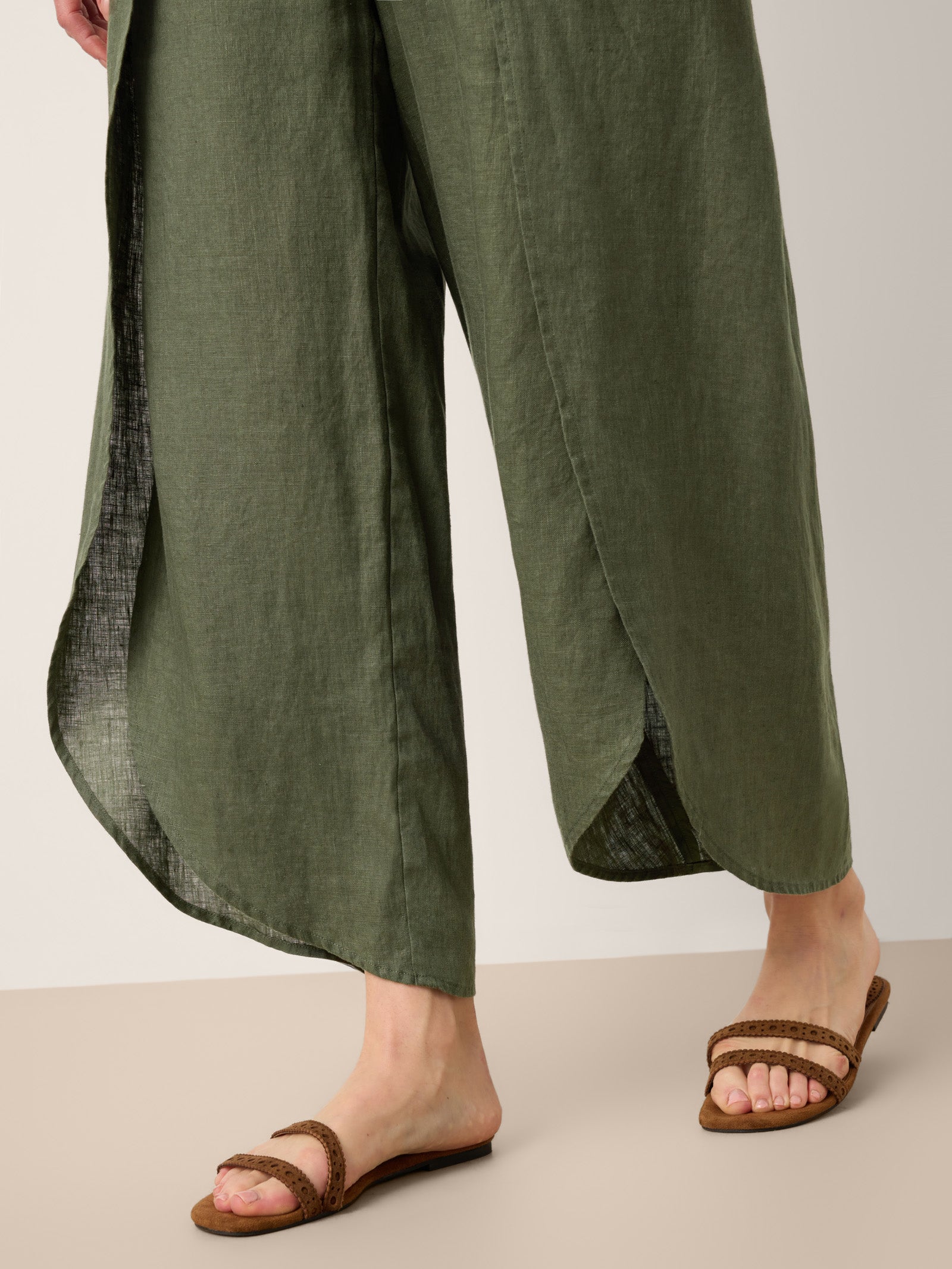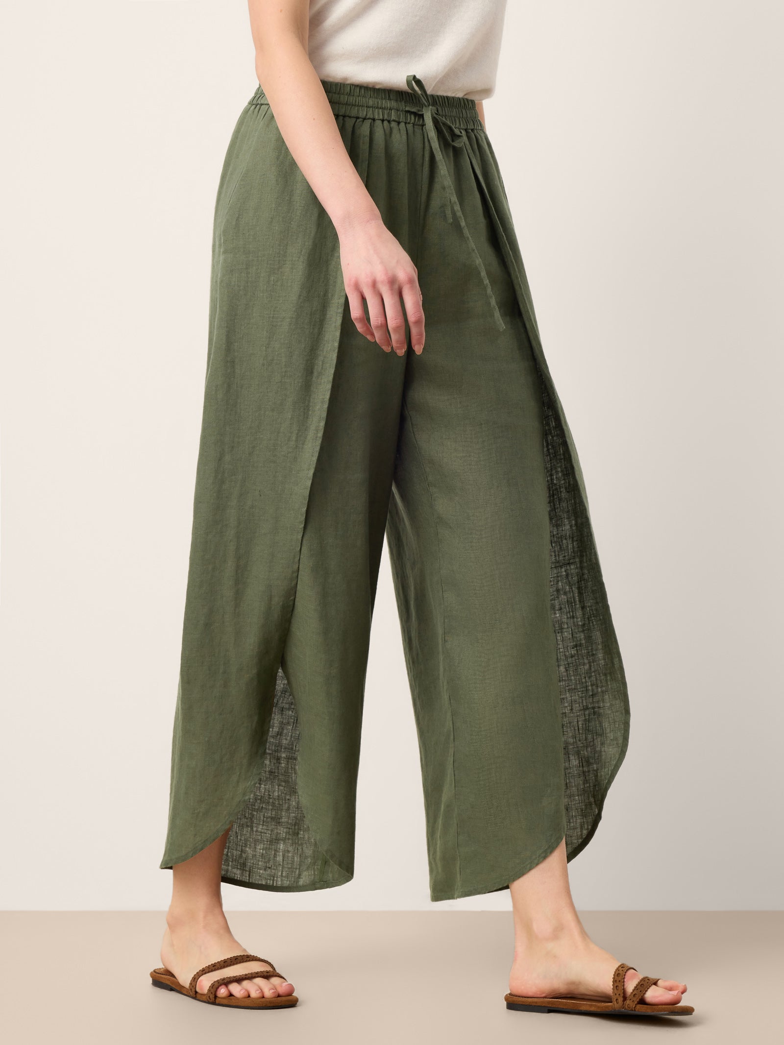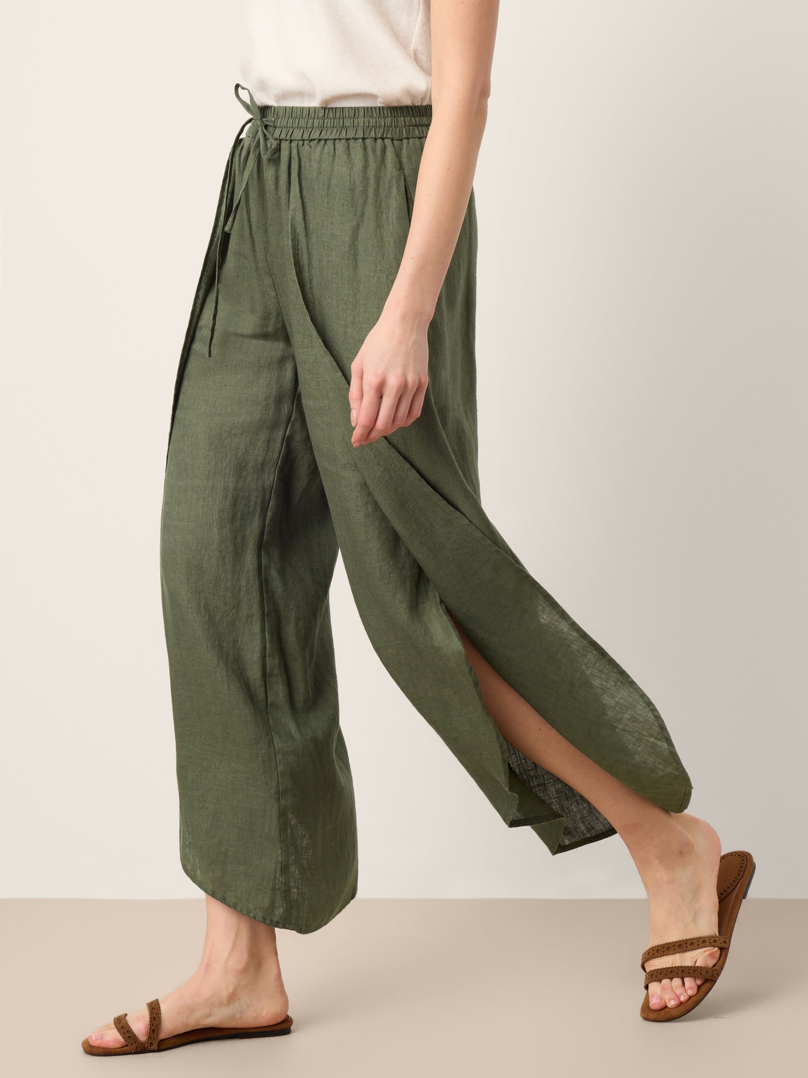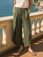 100% Linen Layered Slit Wide-Leg Drawstring Pants PEREGRINE