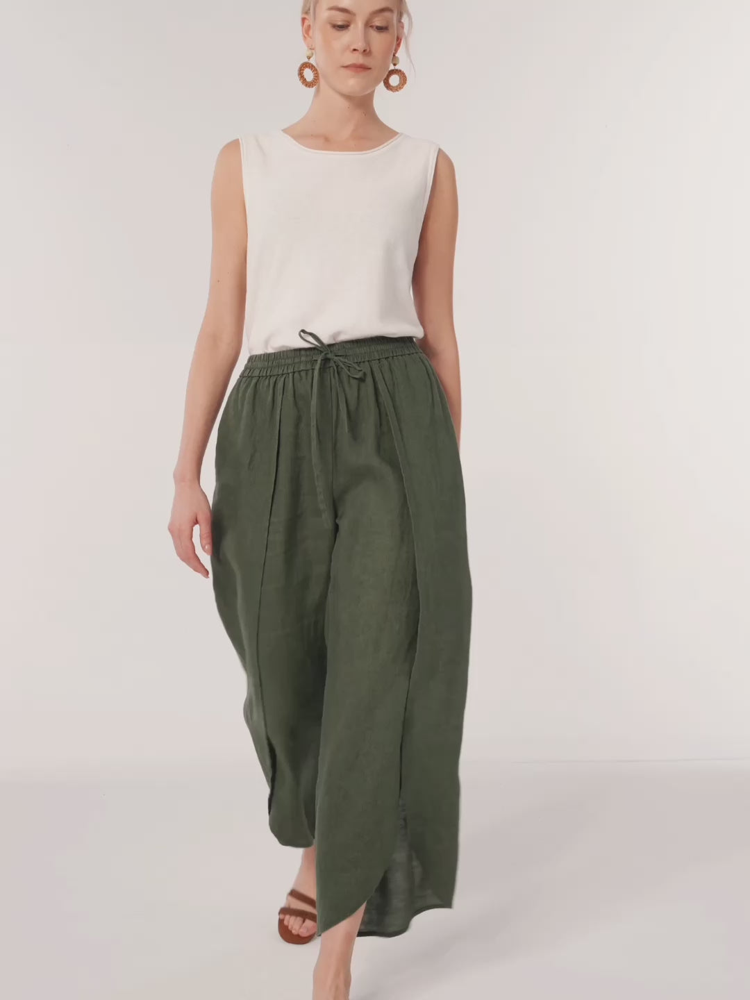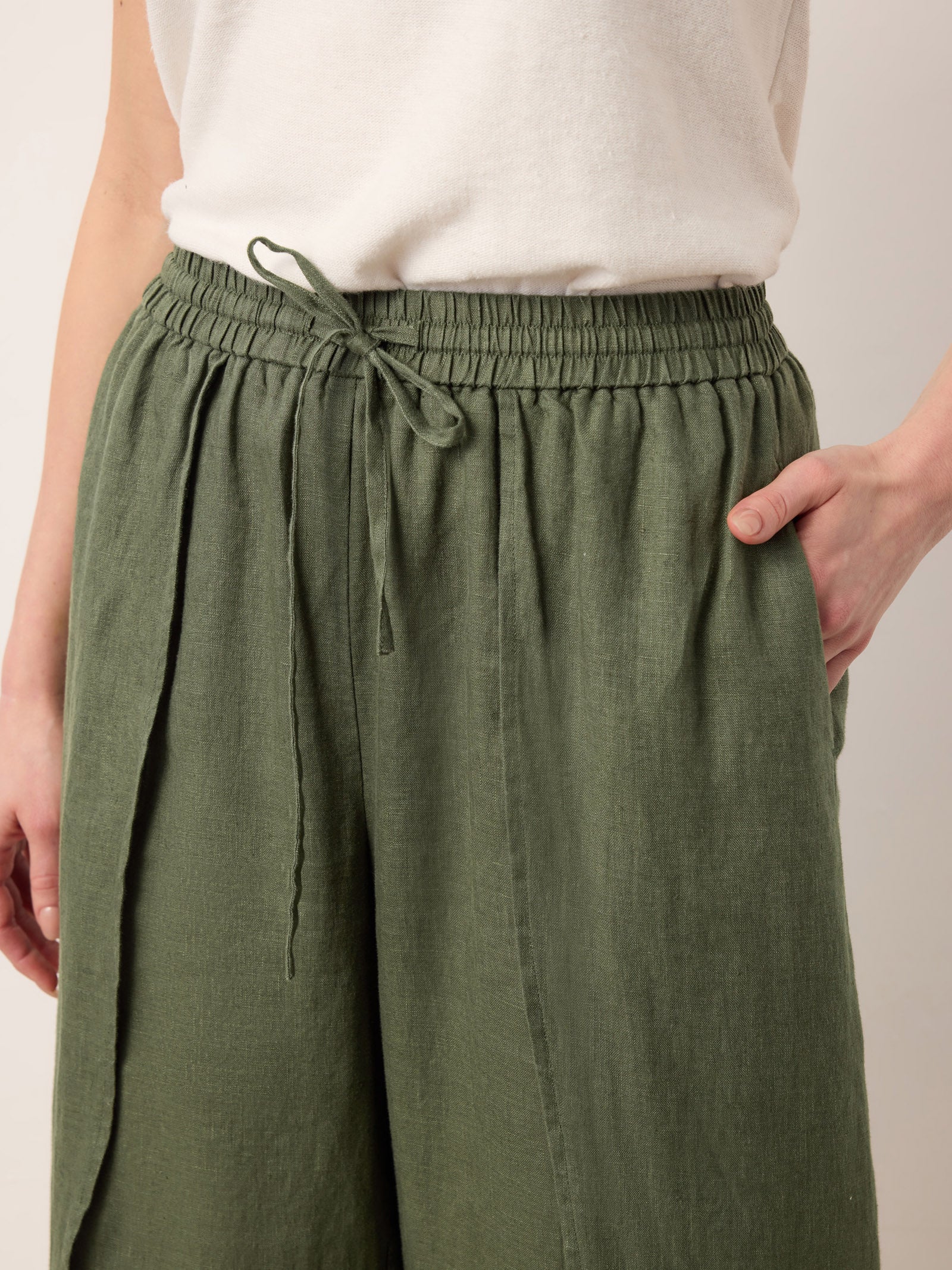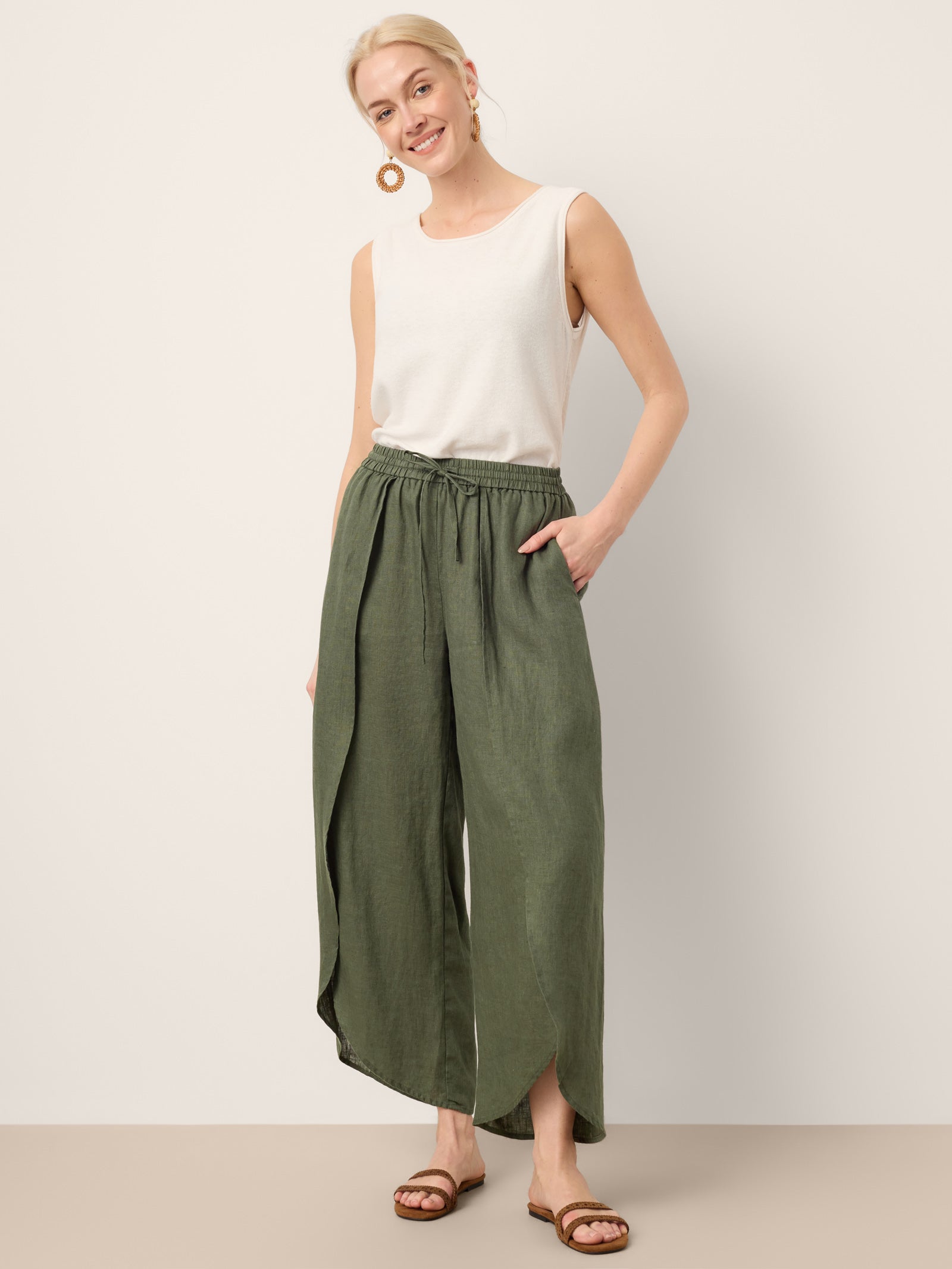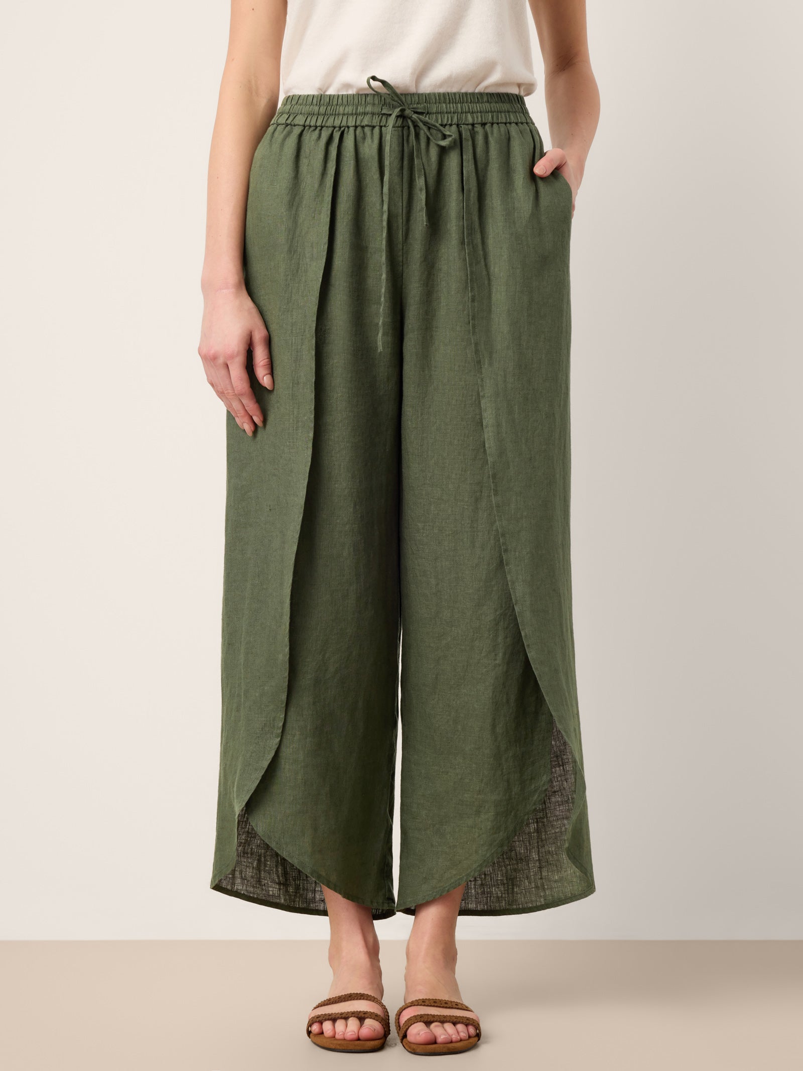 100% Linen Layered Slit Wide-Leg Drawstring Pants PEREGRINE