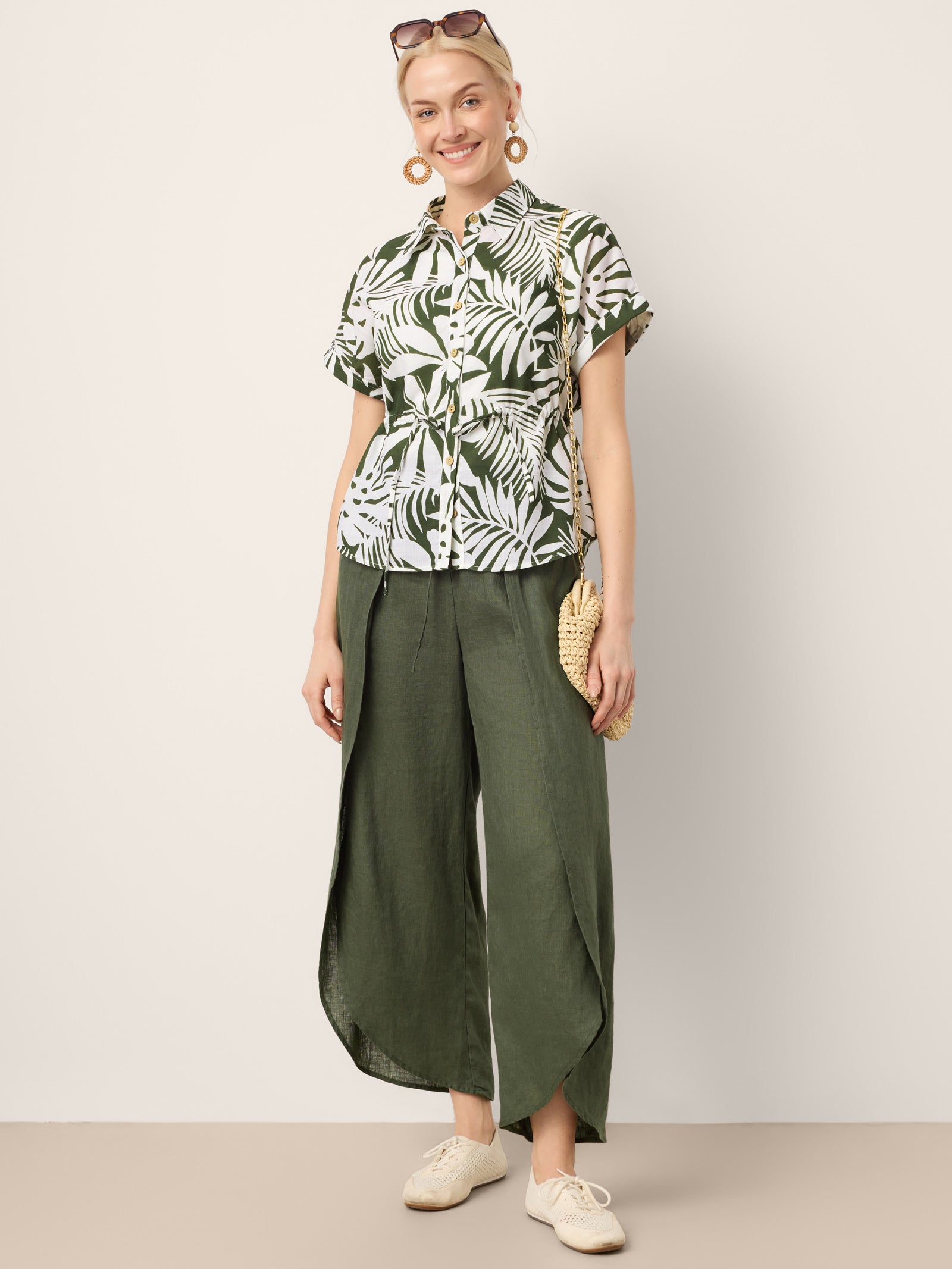 - Versatile Military Green: A muted, earthy tone that pairs effortlessly with neutrals or bold hues—equally at home with sandals for a weekend market or loafers for a casual office day.