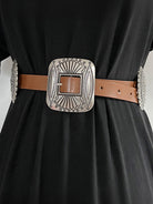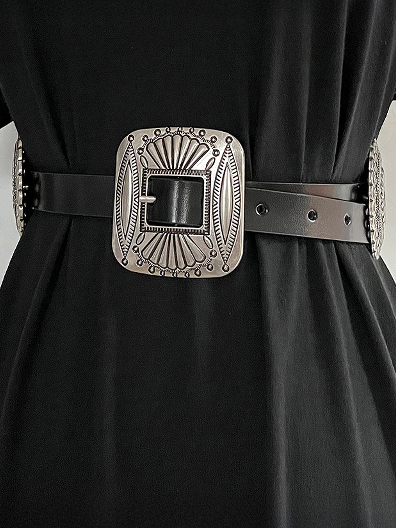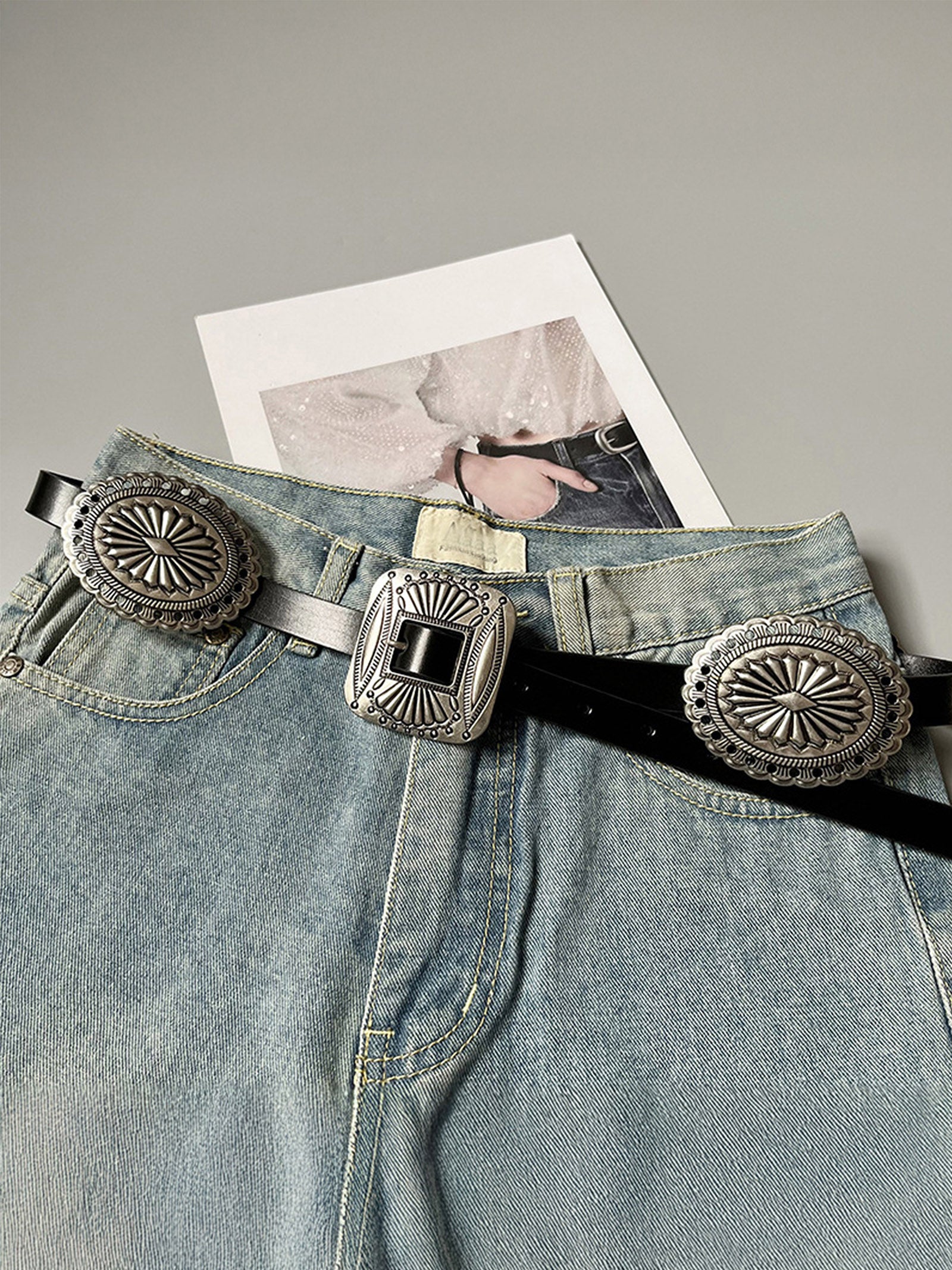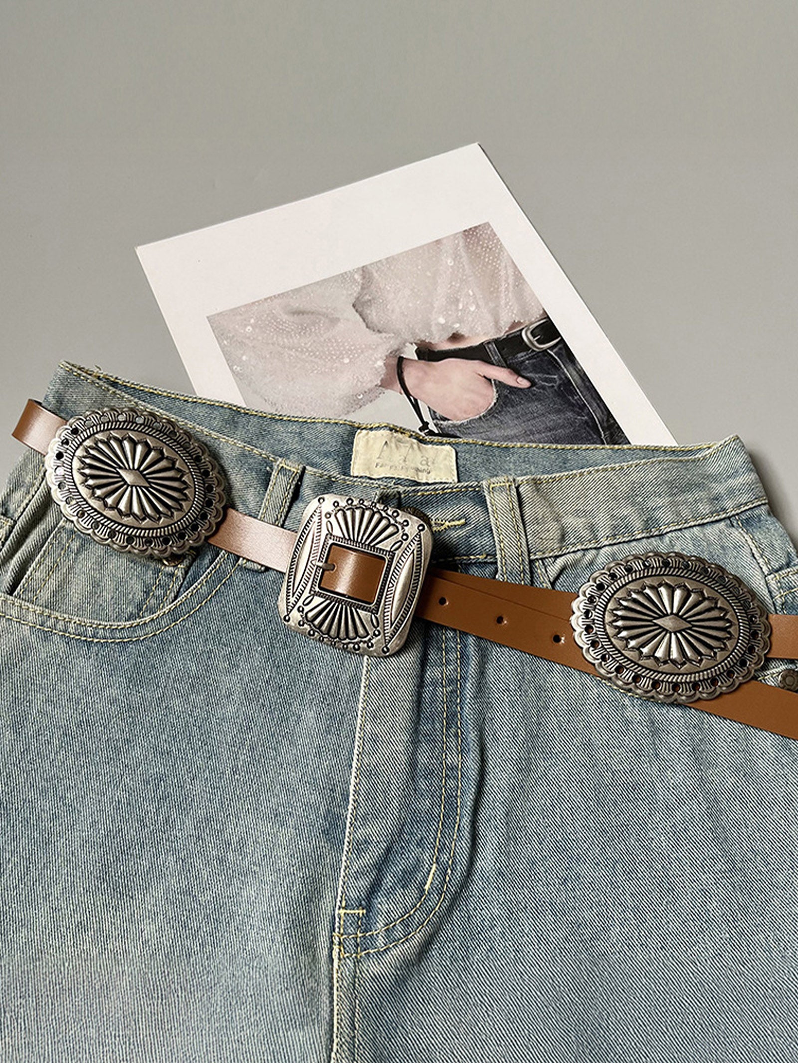 This belt showcases an exquisitely carved metal ring buckle, a testament to meticulous craftsmanship that infuses it with retro character. Its versatile silhouette pairs effortlessly with dresses, trousers, and skirts, adding an artistic focal point to any outfit. Measuring 109¡Á1.8cm, it balances intricate detail with practical wear, ideal for elevating minimalist looks.