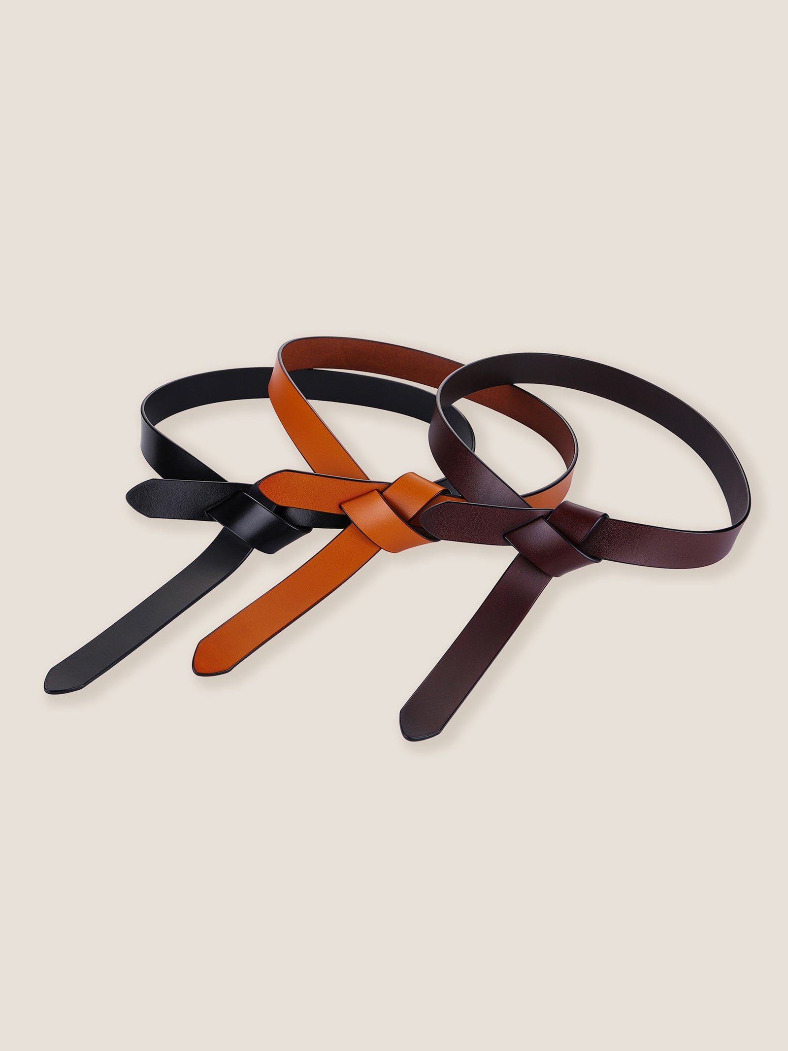 Made of top-tier handcrafted cowhide, this waist cincher features a stylish twisted knot design for an asymmetric, modern silhouette that accentuates the waist. Its hole-free construction allows flexible, personalized adjustment, and the sturdy leather ensures long-term durability. Measuring 120¡Á2.8cm, it blends fashion-forward design with functionality, elevating dresses and coats alike.