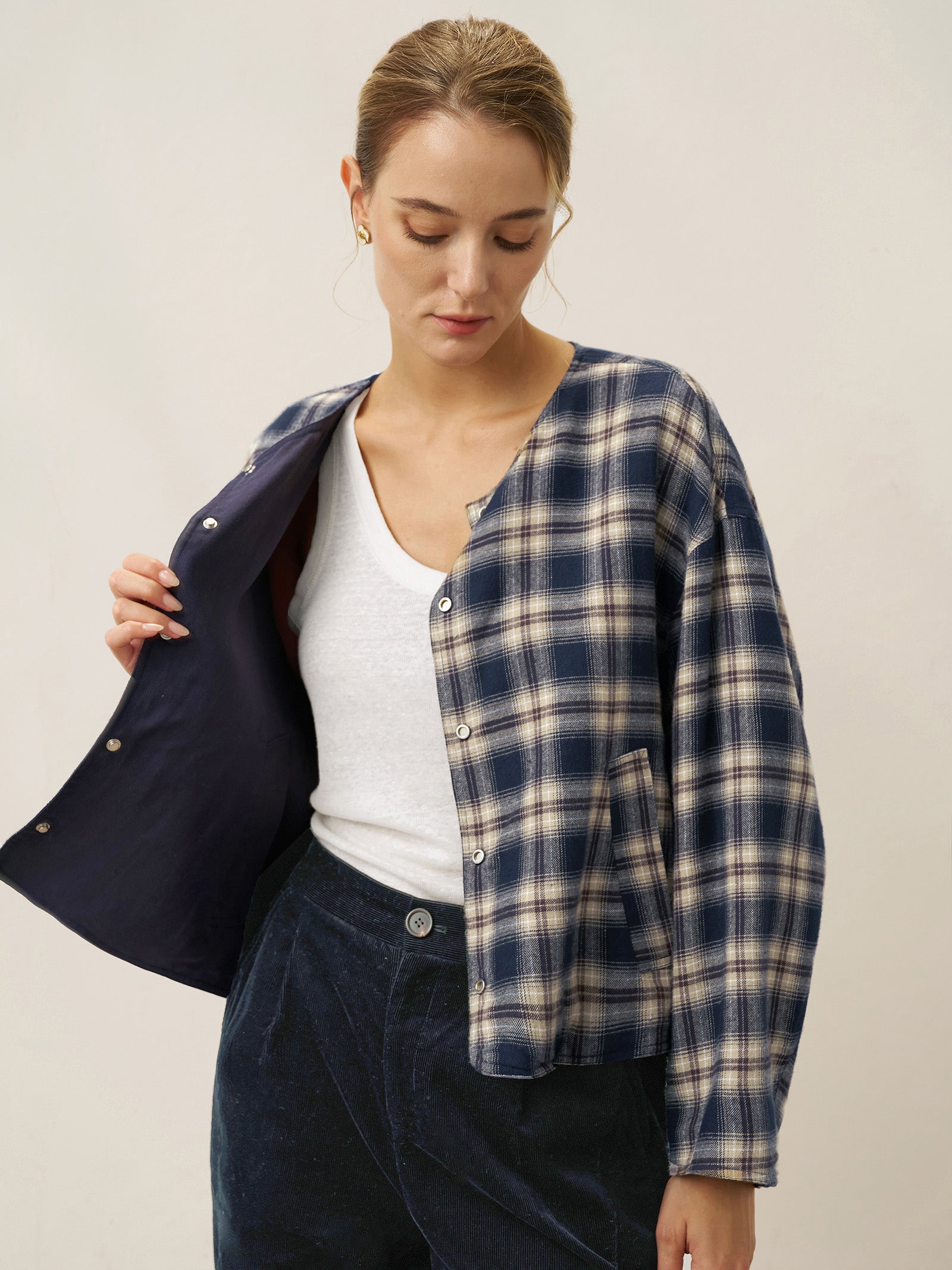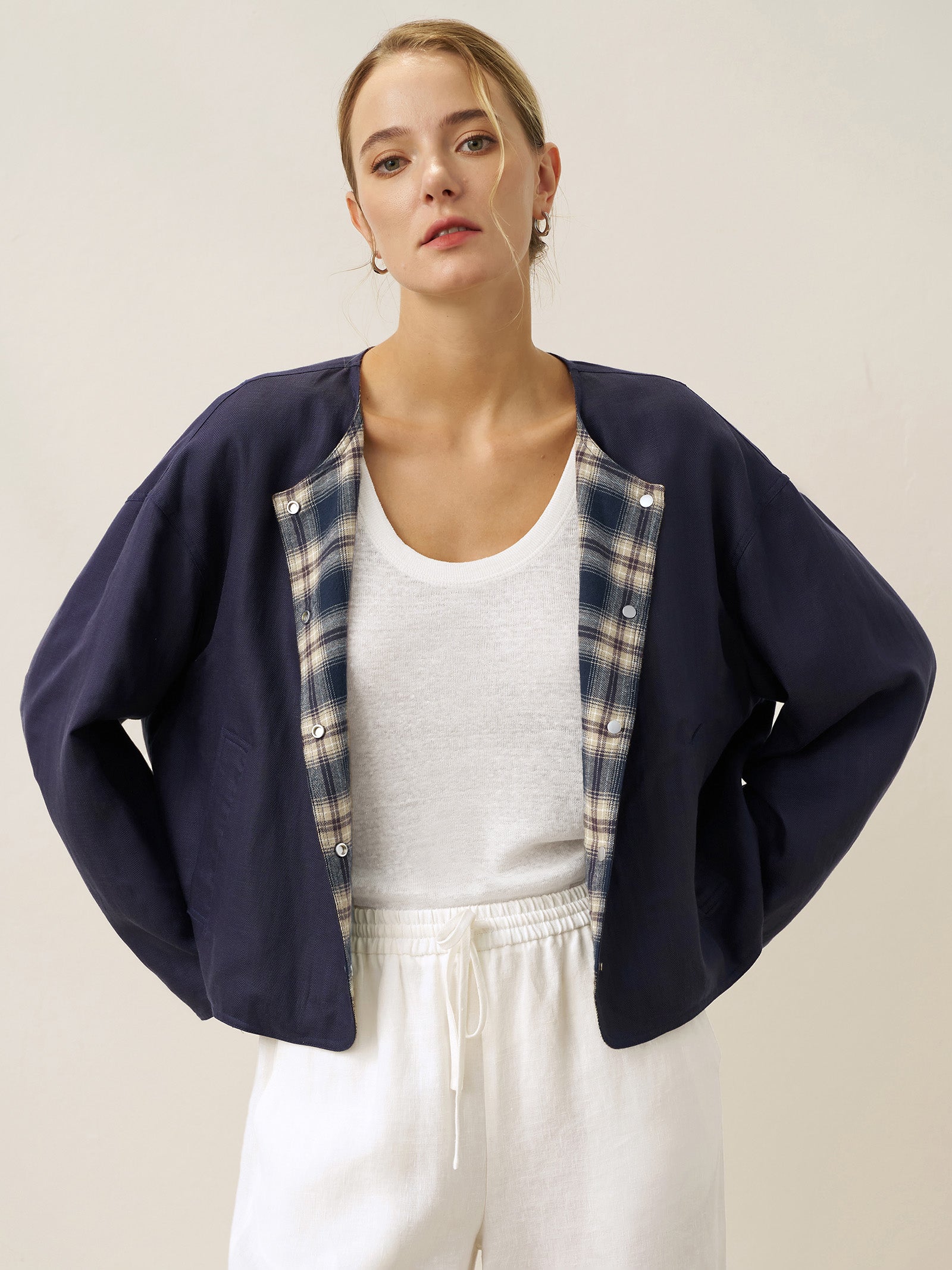 Tencel Linen Reversible Crew Neck Casual Jacket CHLOE