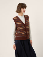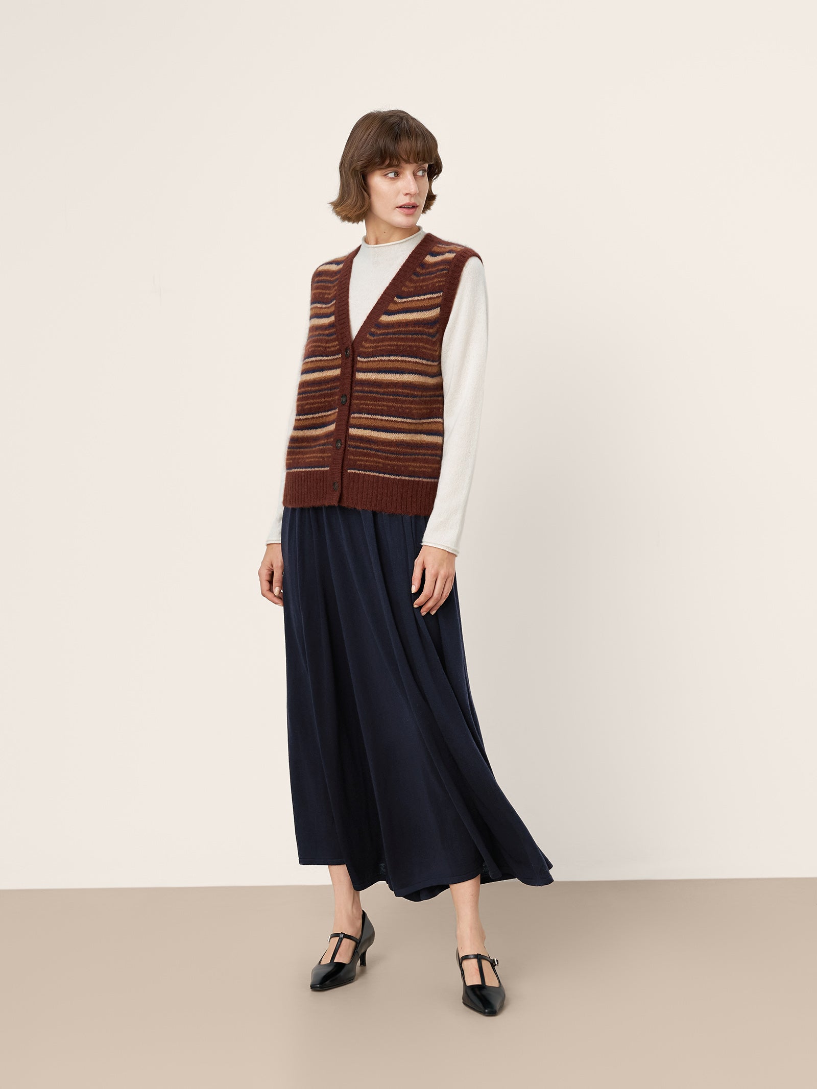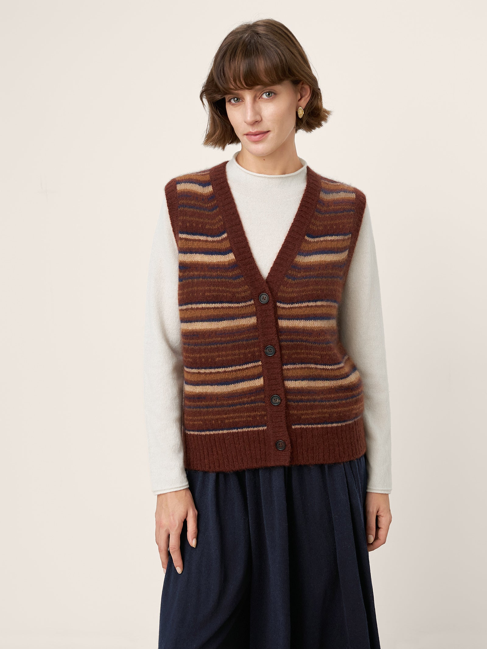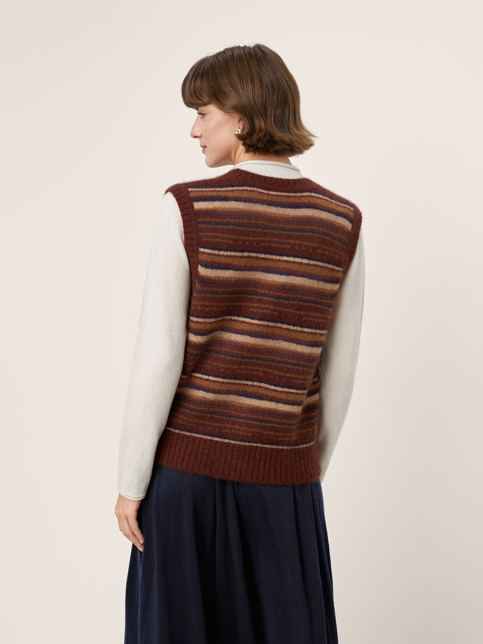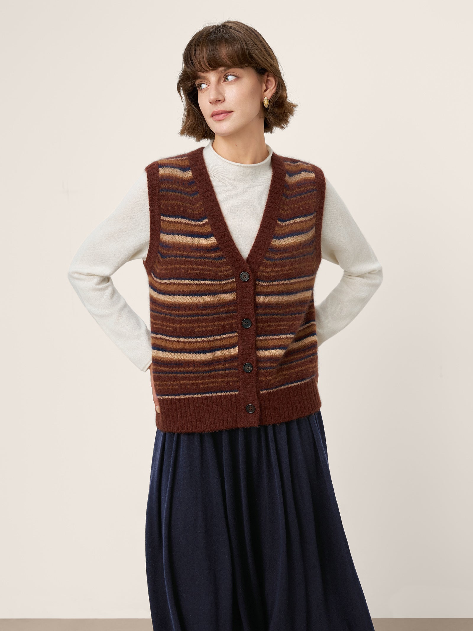 100% Mongolian Cashmere Colorblock Stripe Button-Front Vest SOPHIE
