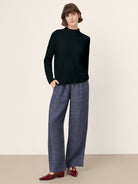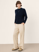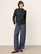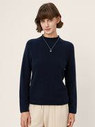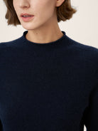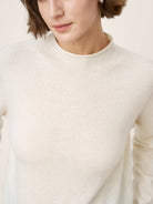 100% Mongolian Cashmere Seamless Rolled-Edge Mock Neck Sweater JANIE