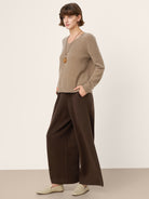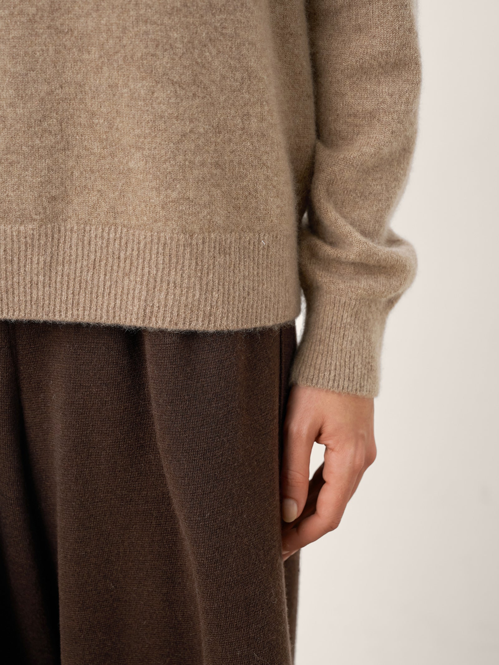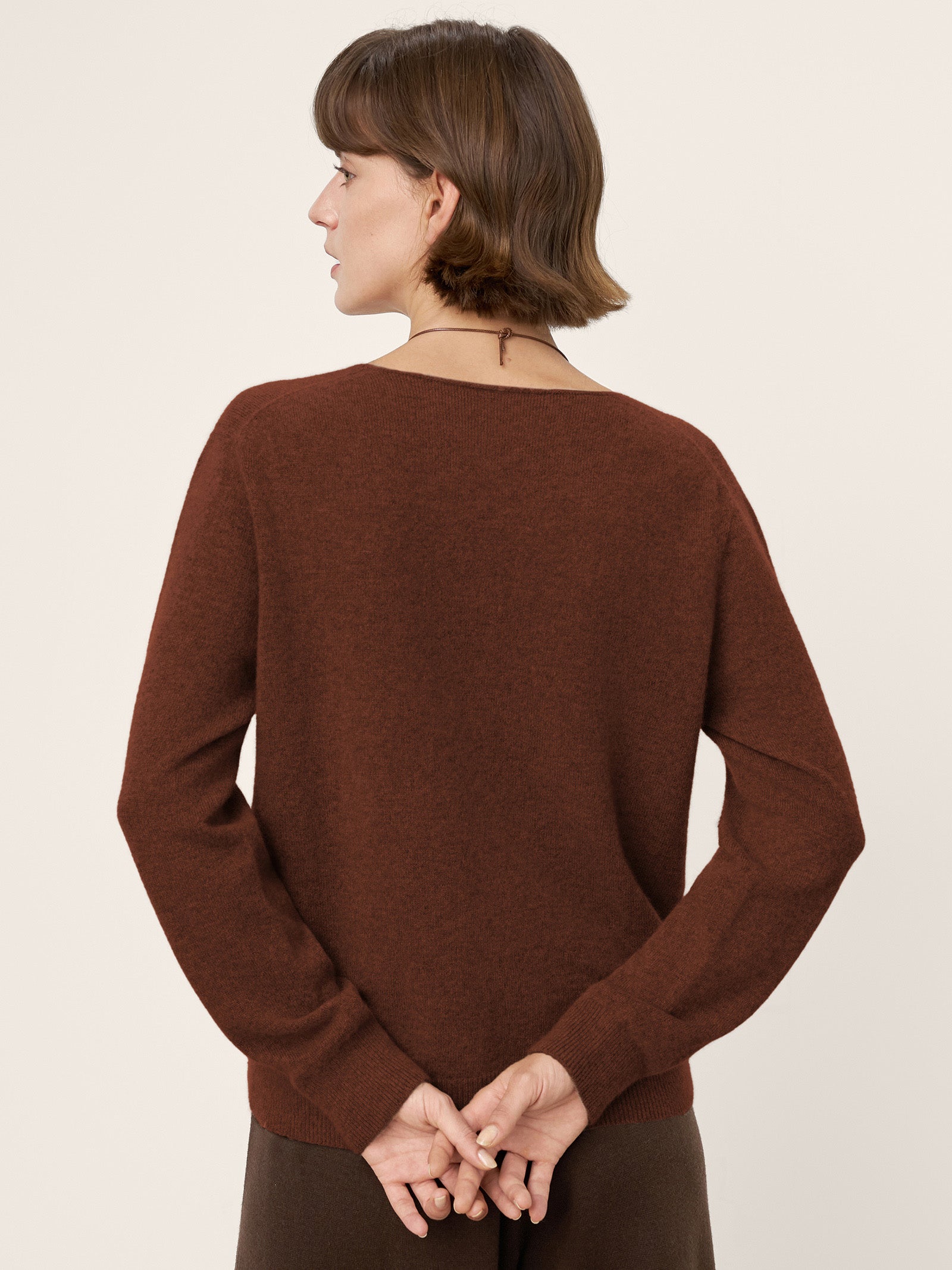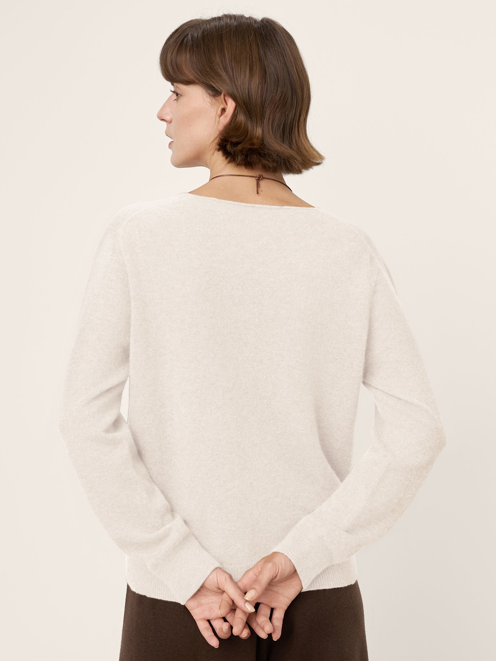 Drift into soft sophistication with Mongolian cashmere, where a graceful V-neck and relaxed silhouette create effortlessly elegant everyday ease.