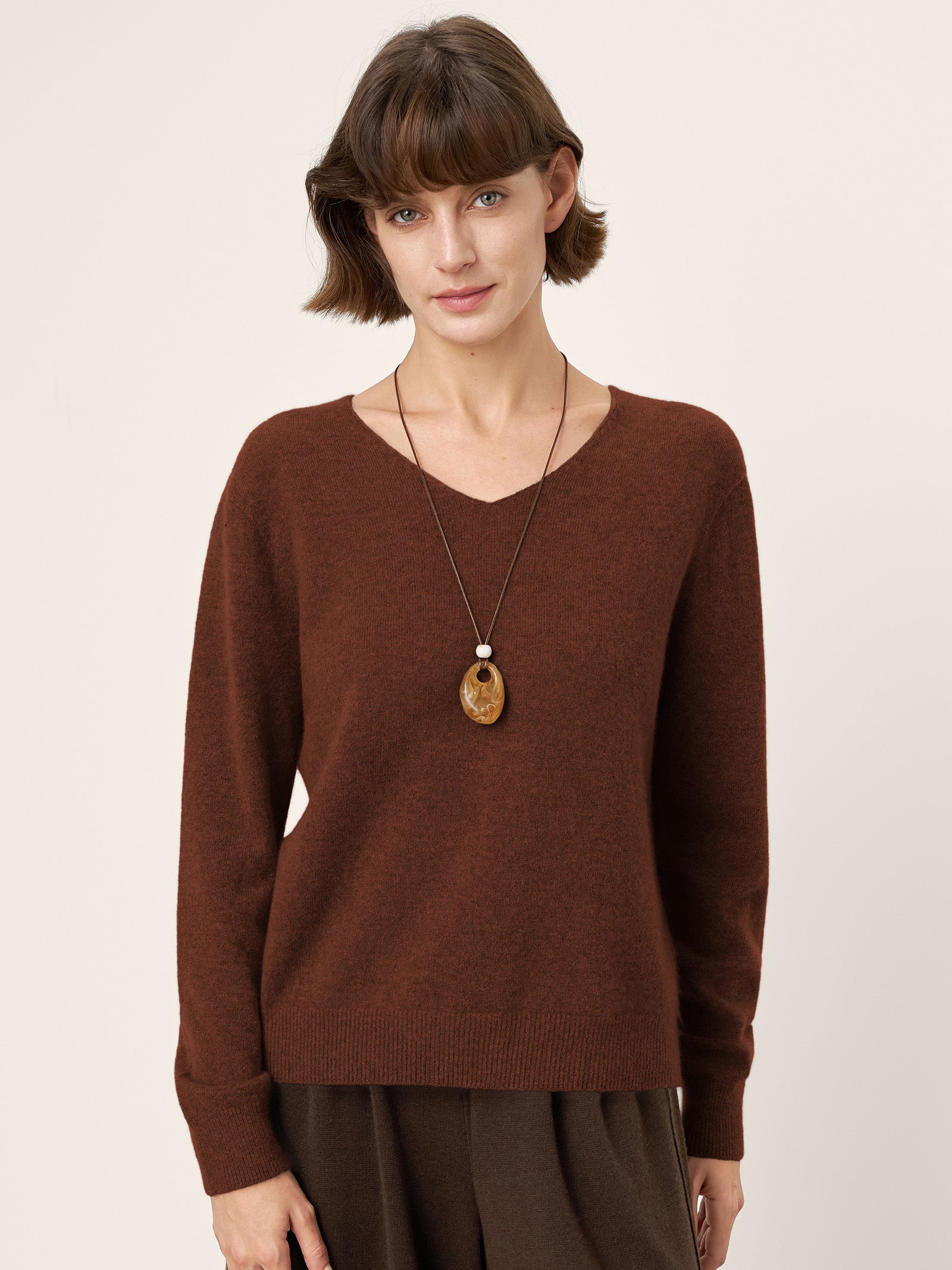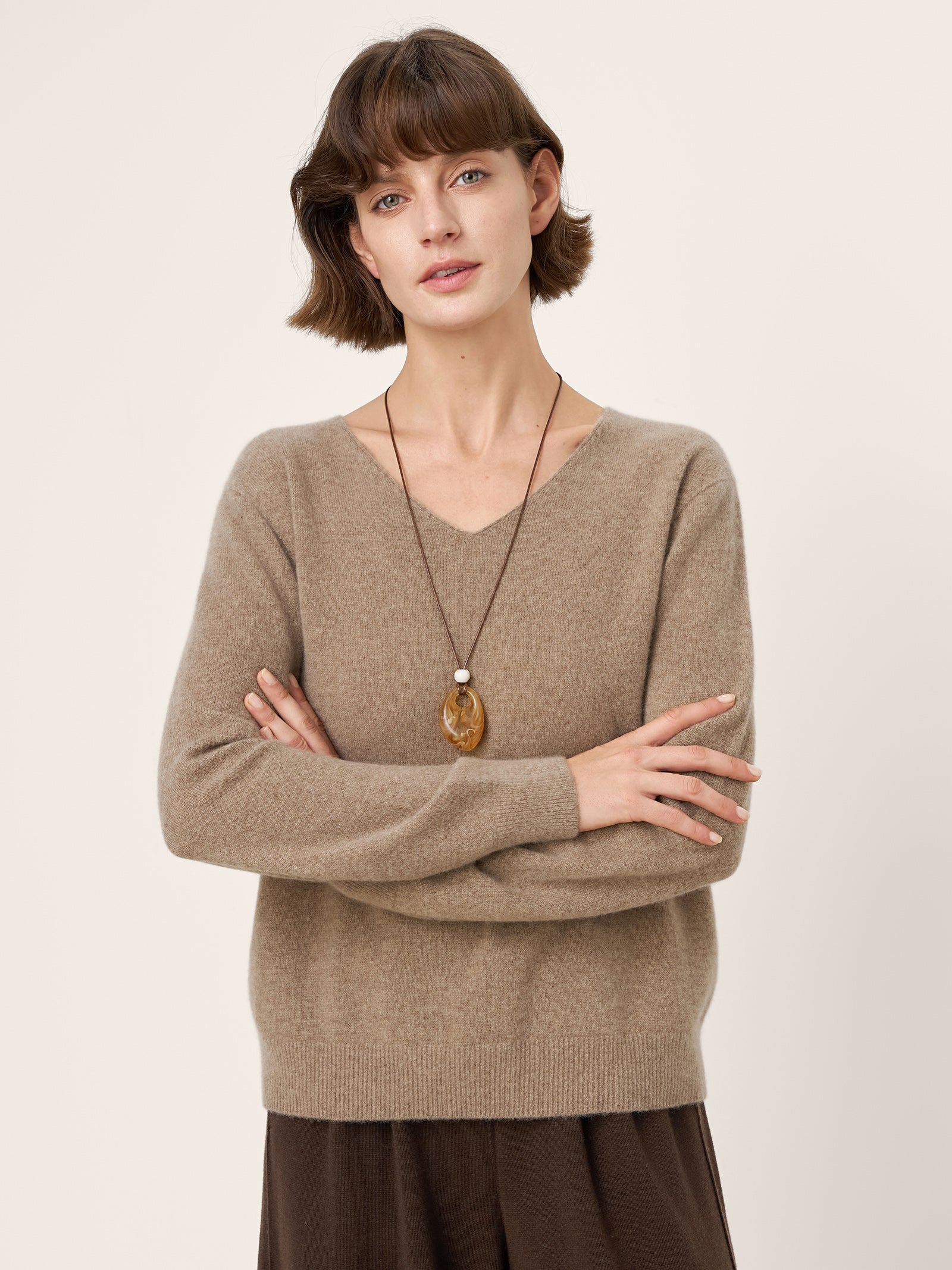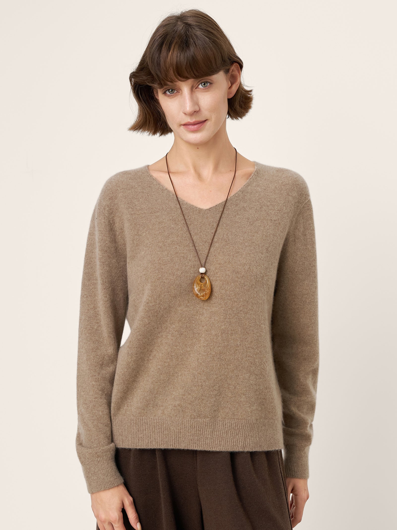 100% Mongolian Cashmere V-Neck Pullover Sweater PIPER