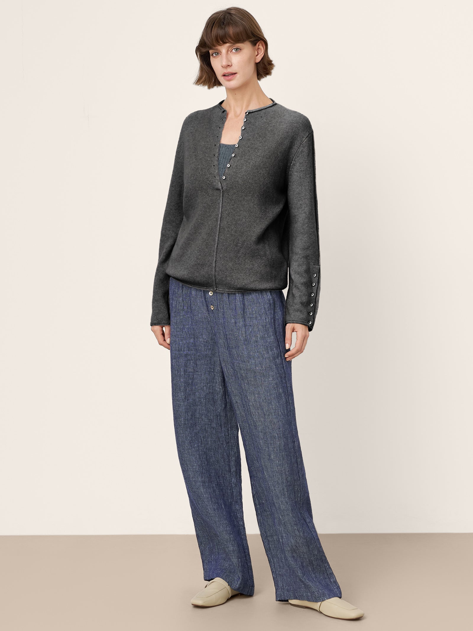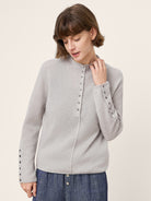 Mongolian Cashmere and Mulberry Silk Henley Knit Top PEARL