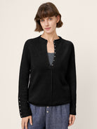 - Vertical Button Placket: Strategically placed contrast buttons create a lengthening visual effect for a heightened, slenderized profile