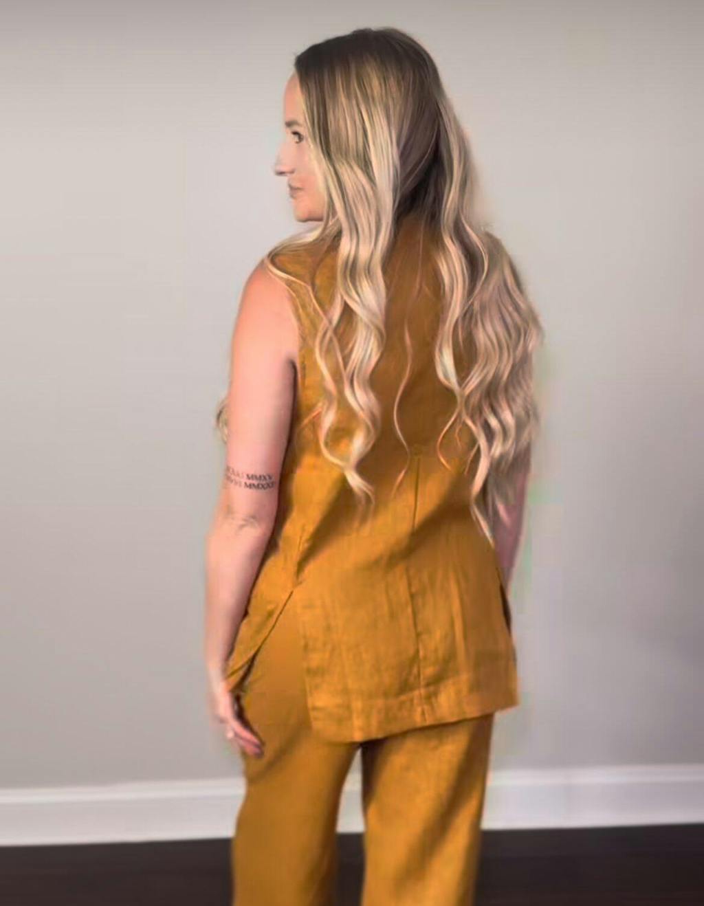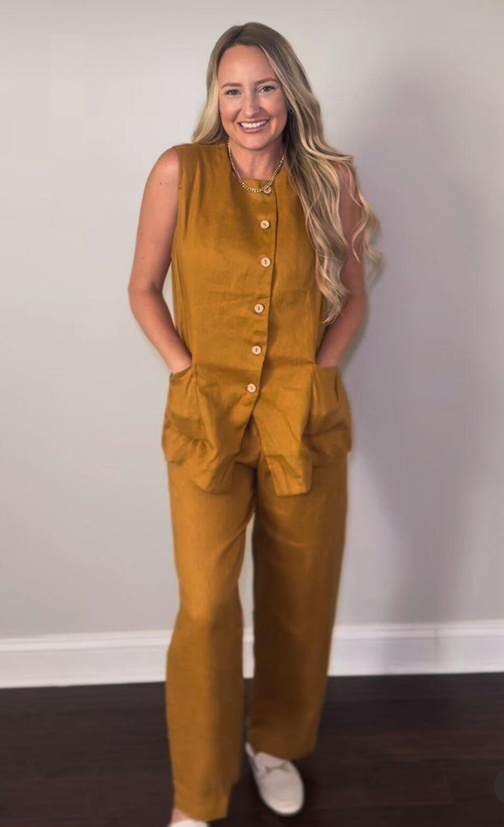 100% Linen Arc-Placket Button-Front Vest ELFRIDA