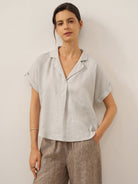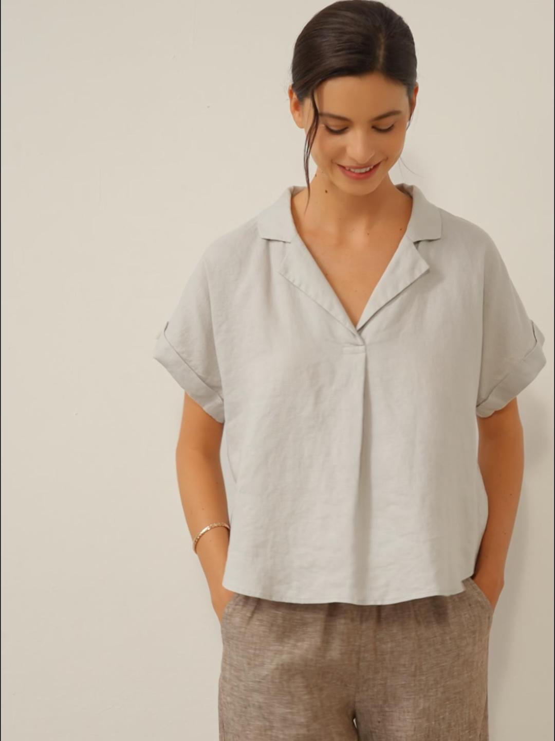 Sophisticated meets effortless in this structured linen top with blazer-inspired details.