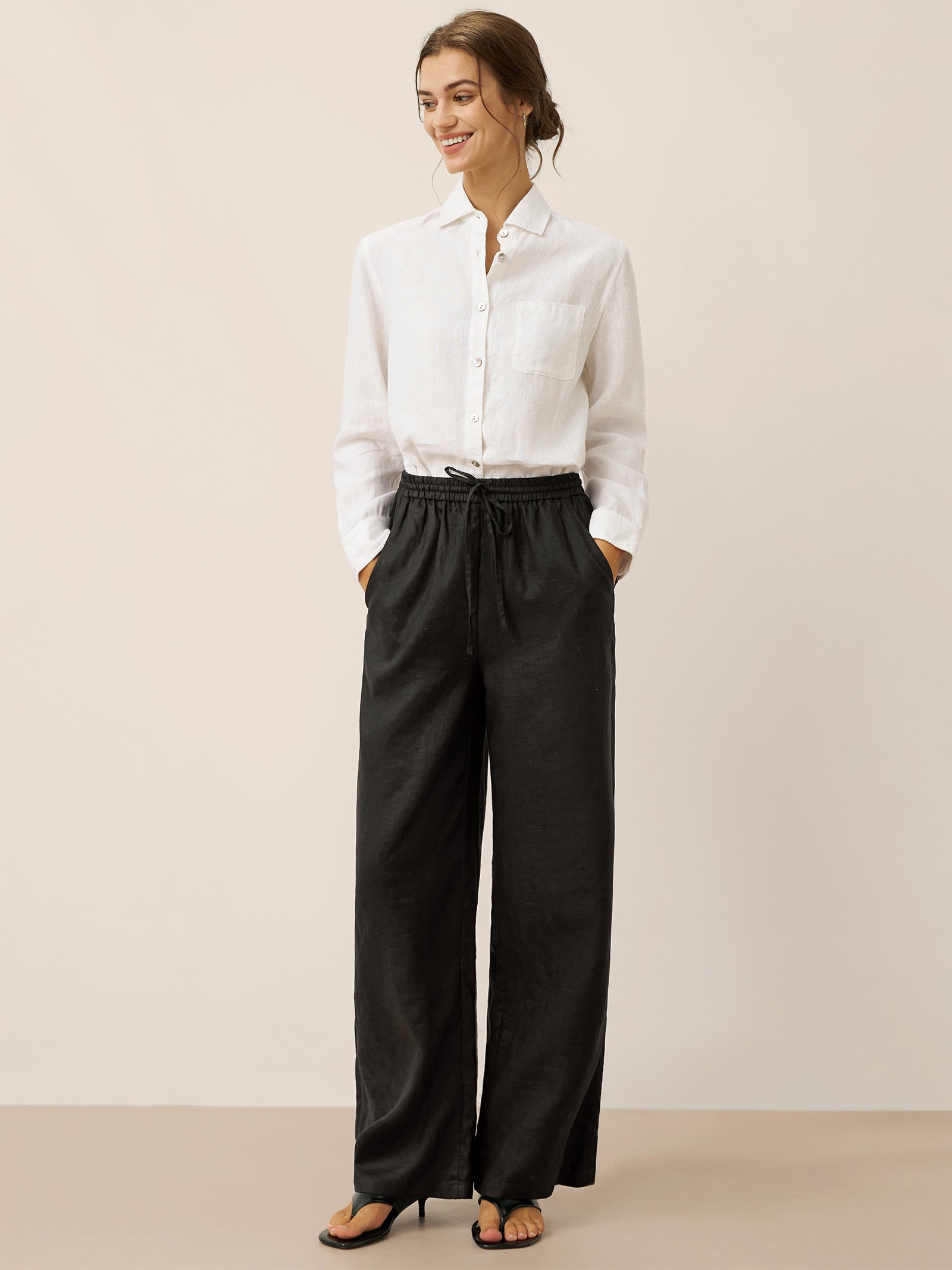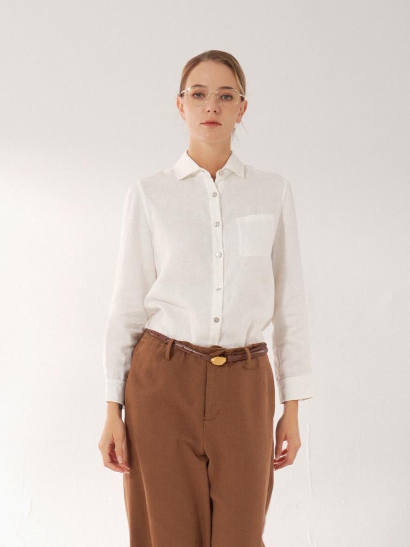 A crisp linen shirt that blends tailored structure with flexible details in the chest pocket for a polished, versatile look.