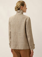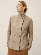 100% Linen Convertible Stand Collar Double Breasted Blazer Jacket NAOMI
