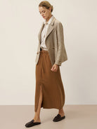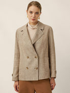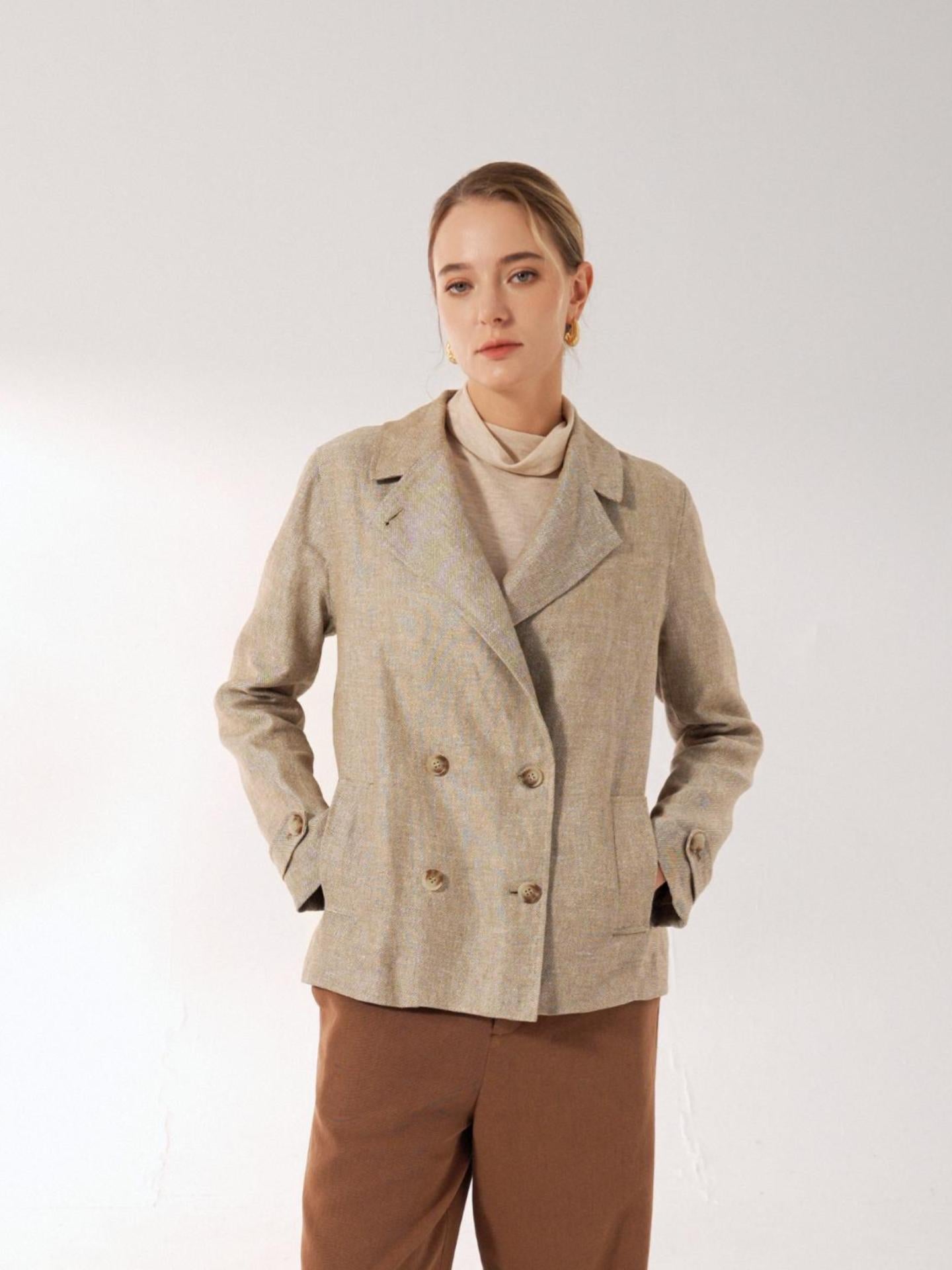 The NAOMI Double-Breasted Linen Blazer offers timeless elegance through heavyweight linen fabric and versatile functional details.