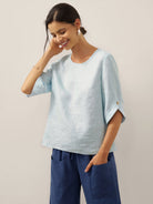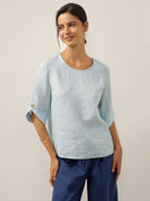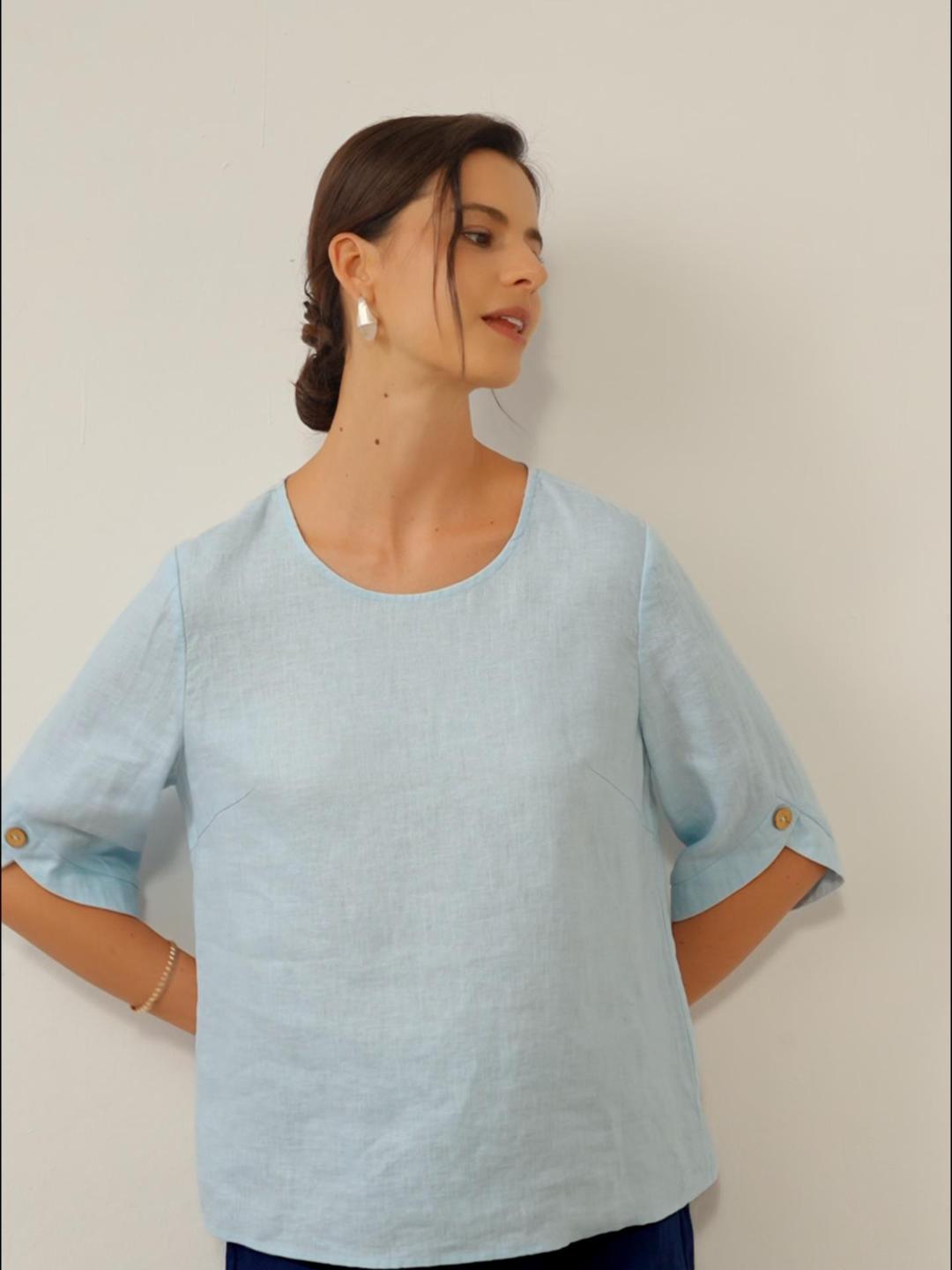 100% Linen Elbow Sleeve Pullover Top NOLA